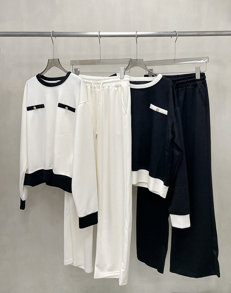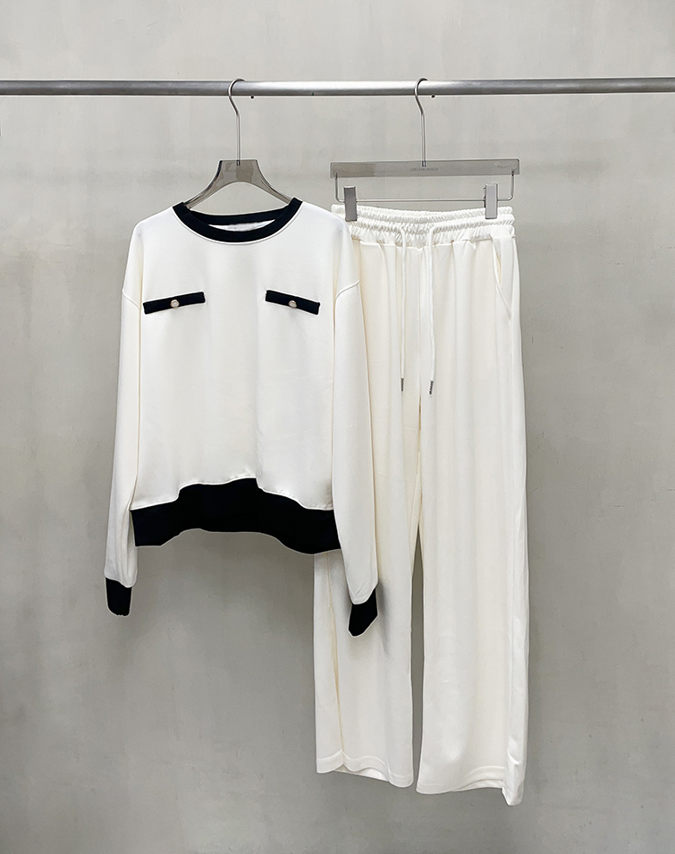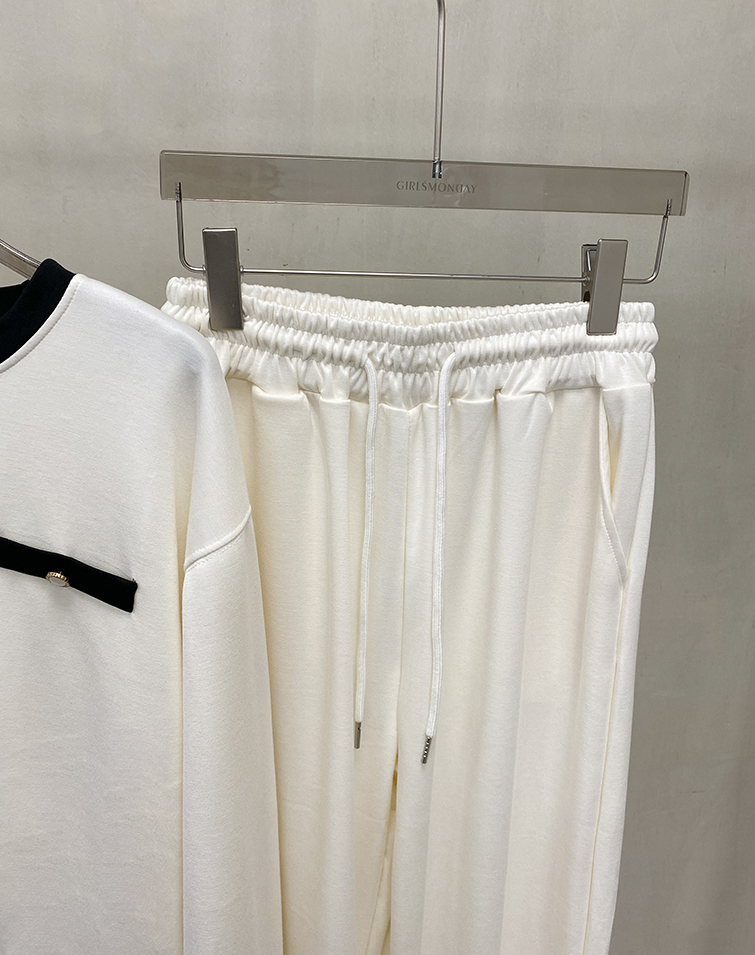 Bottom: Full elastic waist / Straight slim fit / Removable