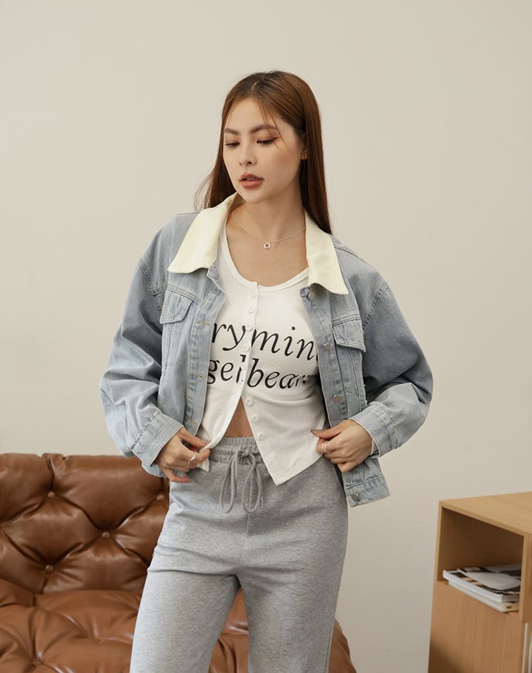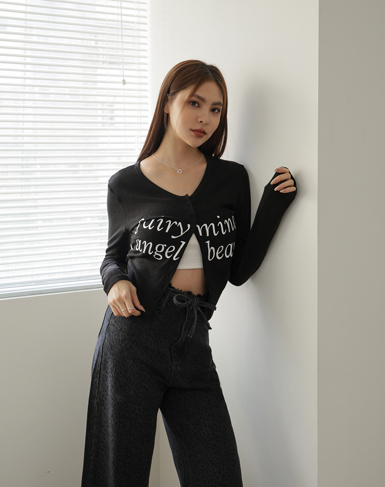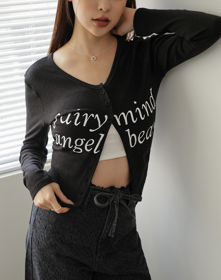 AMERICAN LETTER BUTTON LIGHT KNIT TOP
