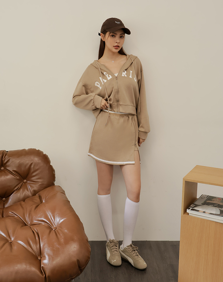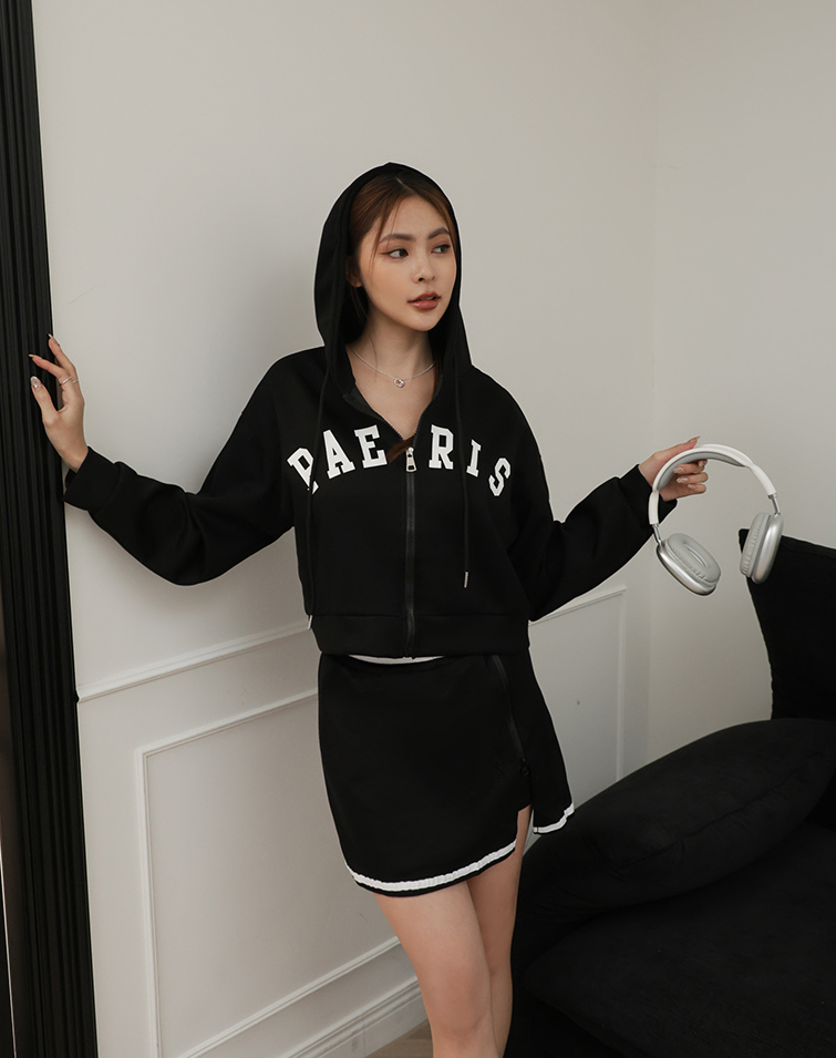 Bottom: Full elastic waistband / Contrast side stripes / Detachable styling