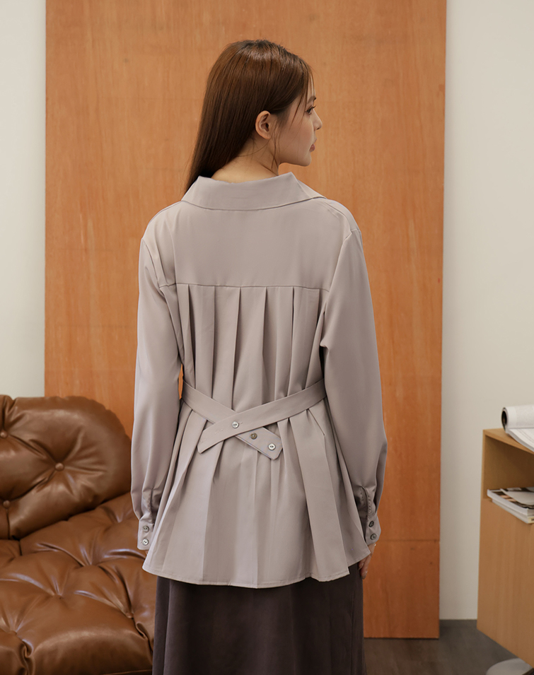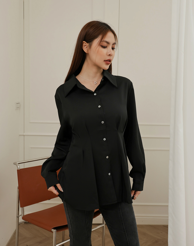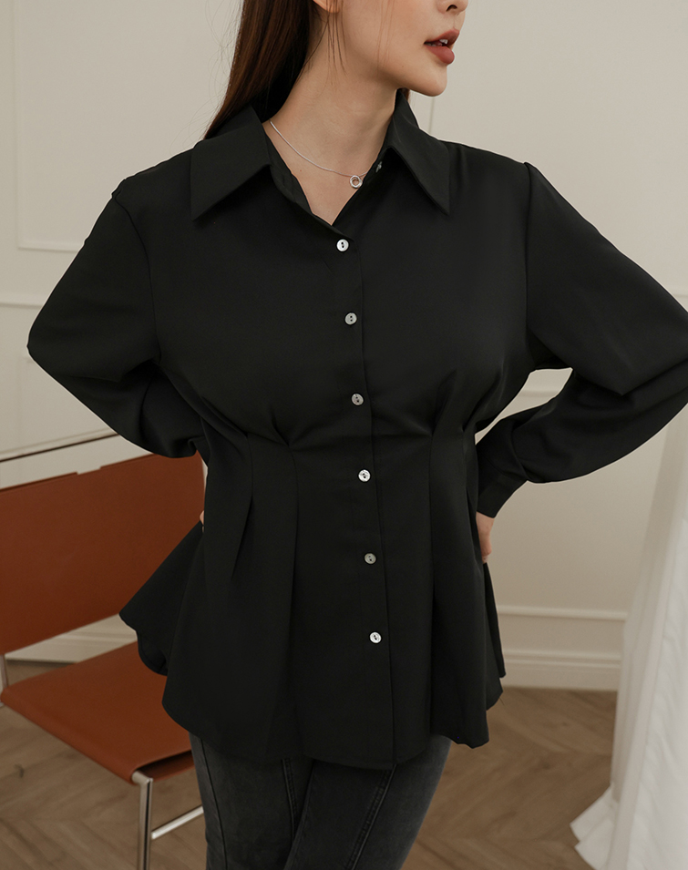 FRENCH ELEGANT RUCHED WAIST SHIRT
