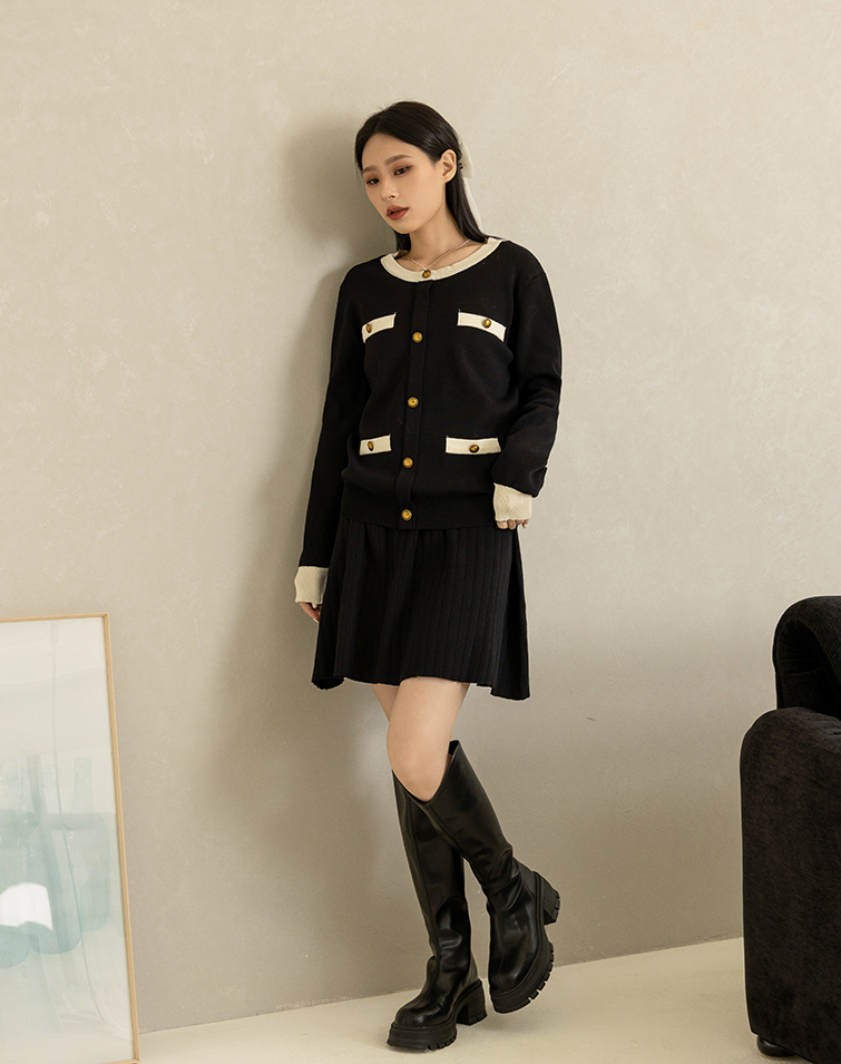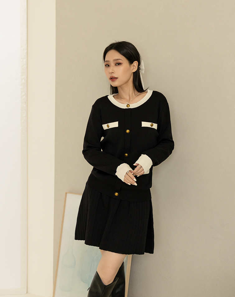 Top: Color-block design / Soft knitted fabric / Detachable styling