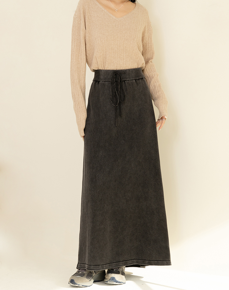 SLIMMING DRAWSTRING KNIT MAXI SKIRT