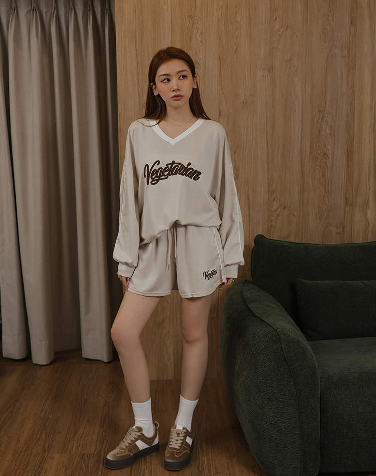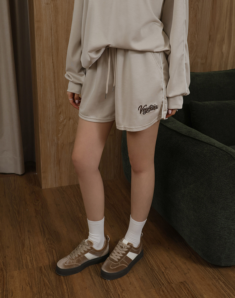 Bottom: Full elastic waistband / Side pockets / Textured embroidery / Can be worn separately