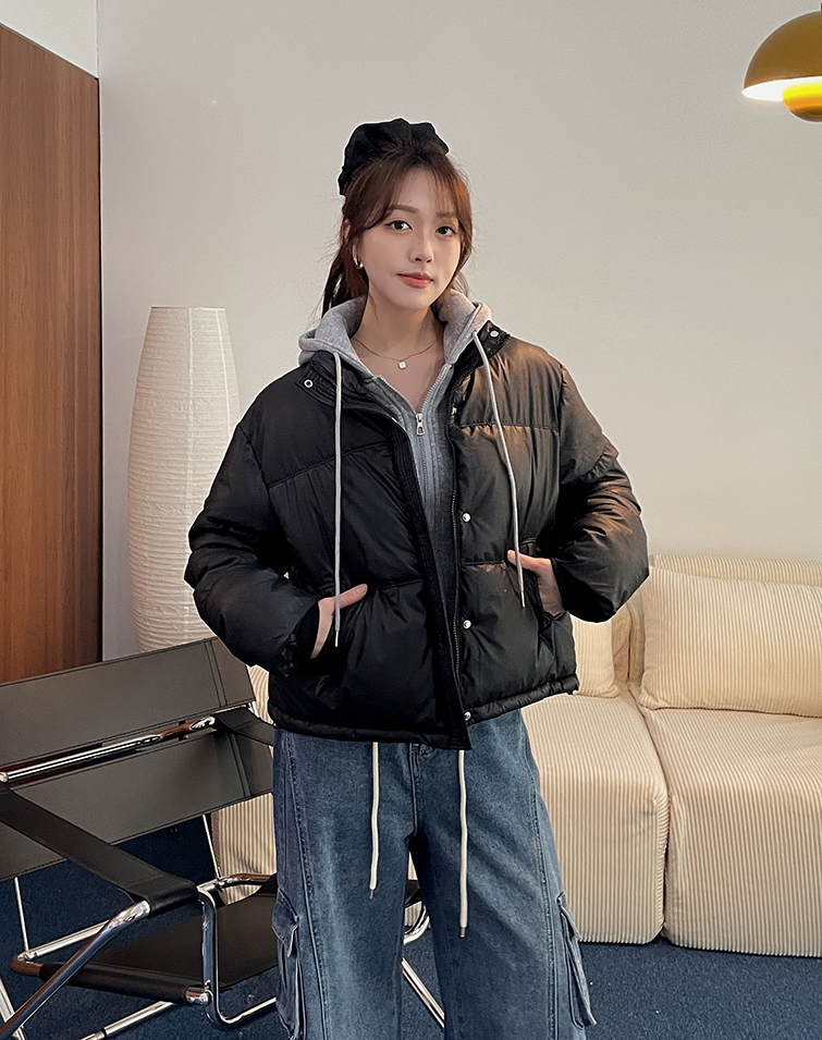 Side Pockets / Padded Lining / Hooded / Drawstrings at Hem