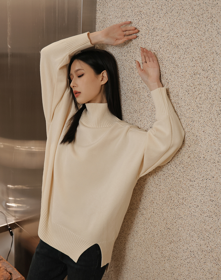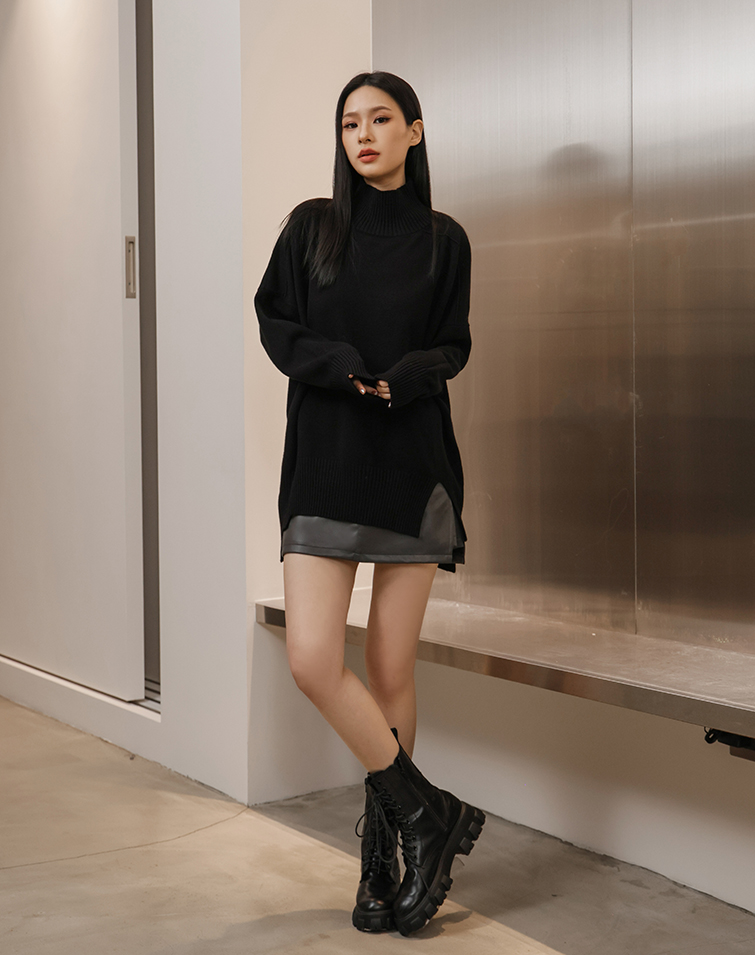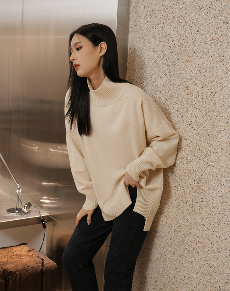 Loose fit / Slenderizing / Front hem slit / Soft and skin-friendly