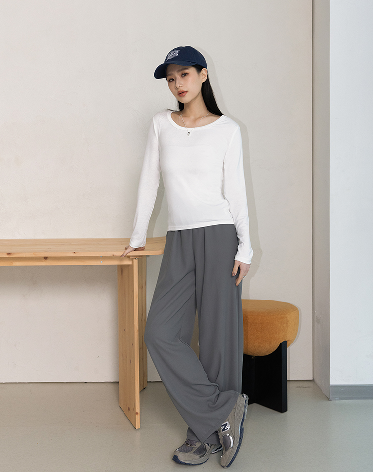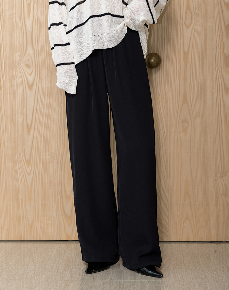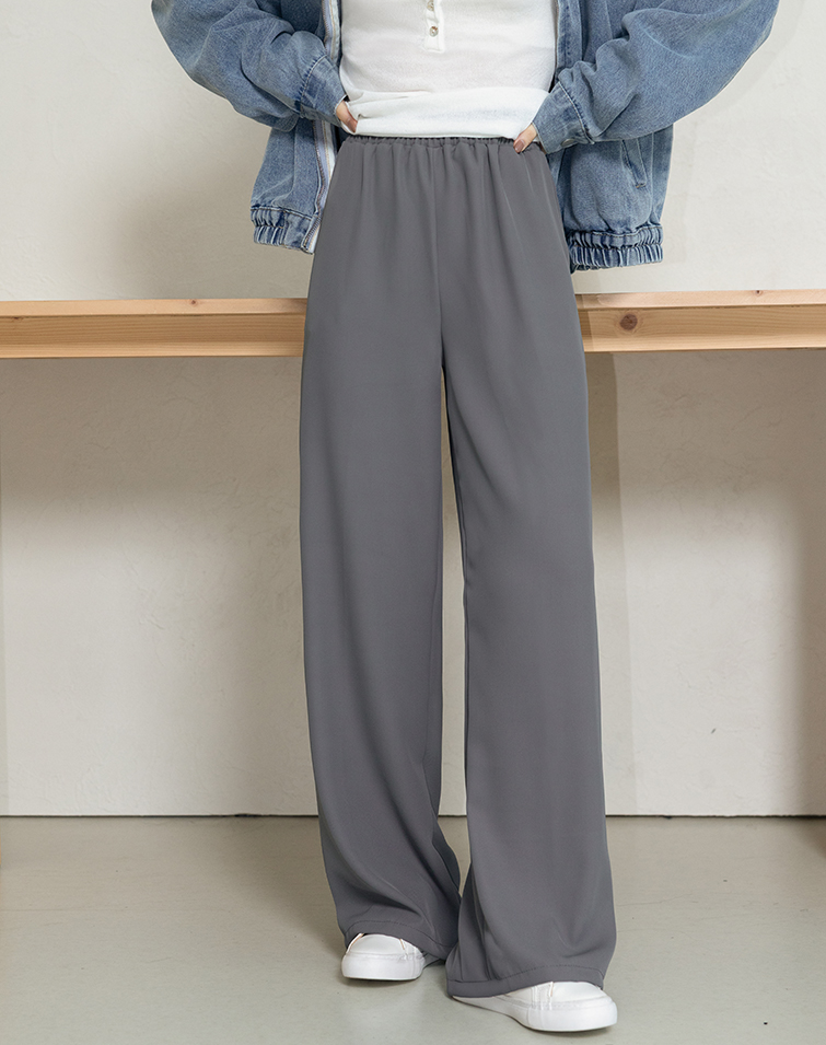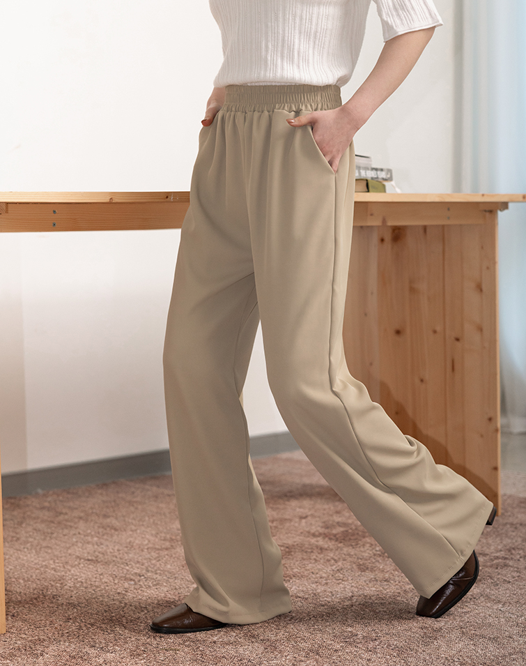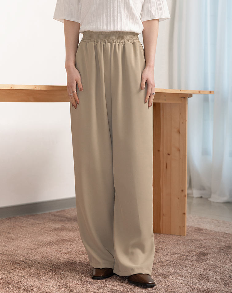 LIGHTWEIGHT PLAIN ELASTIC WIDE PANTS