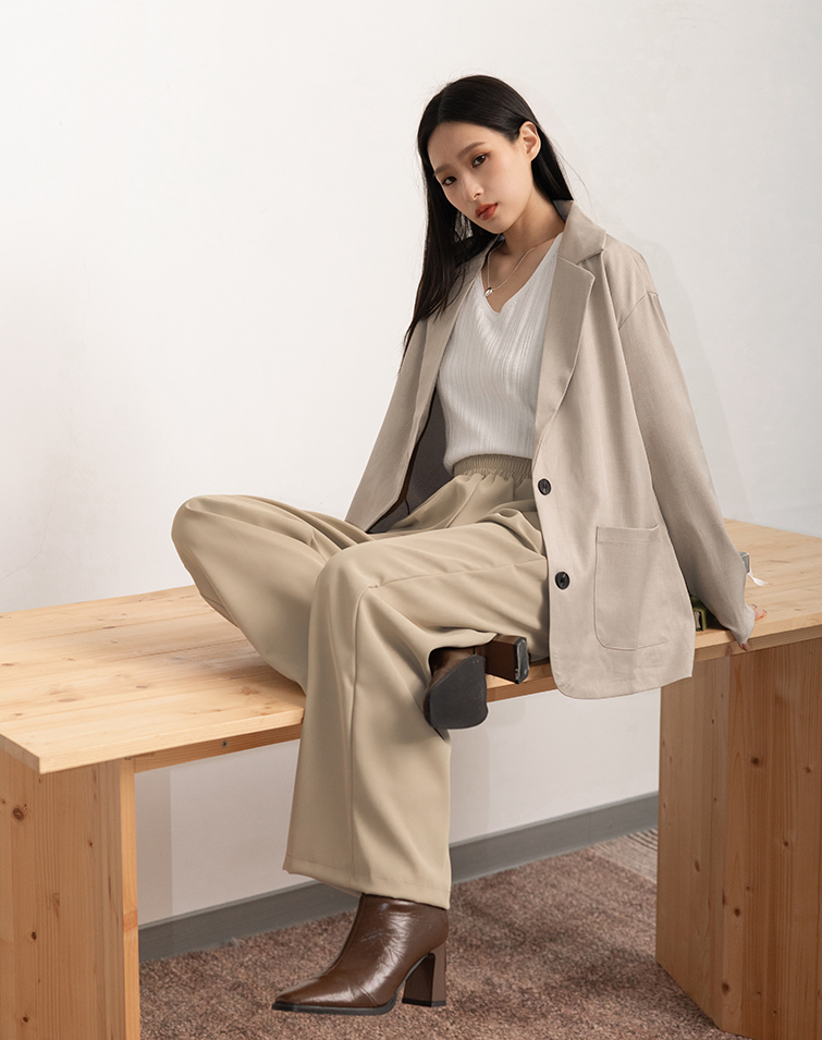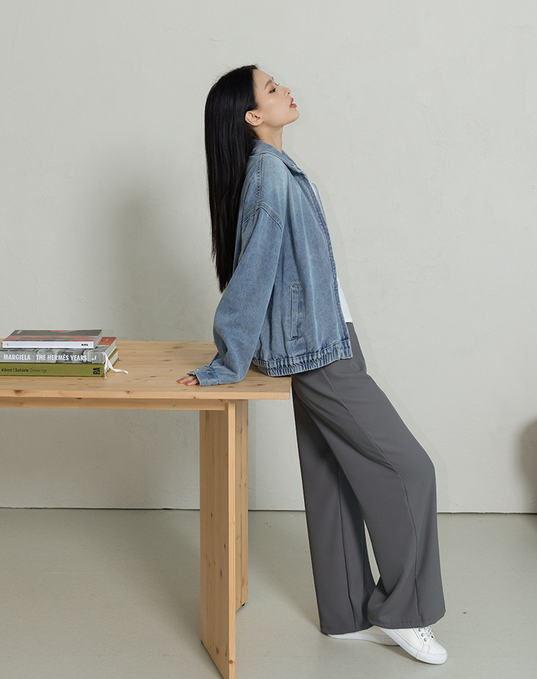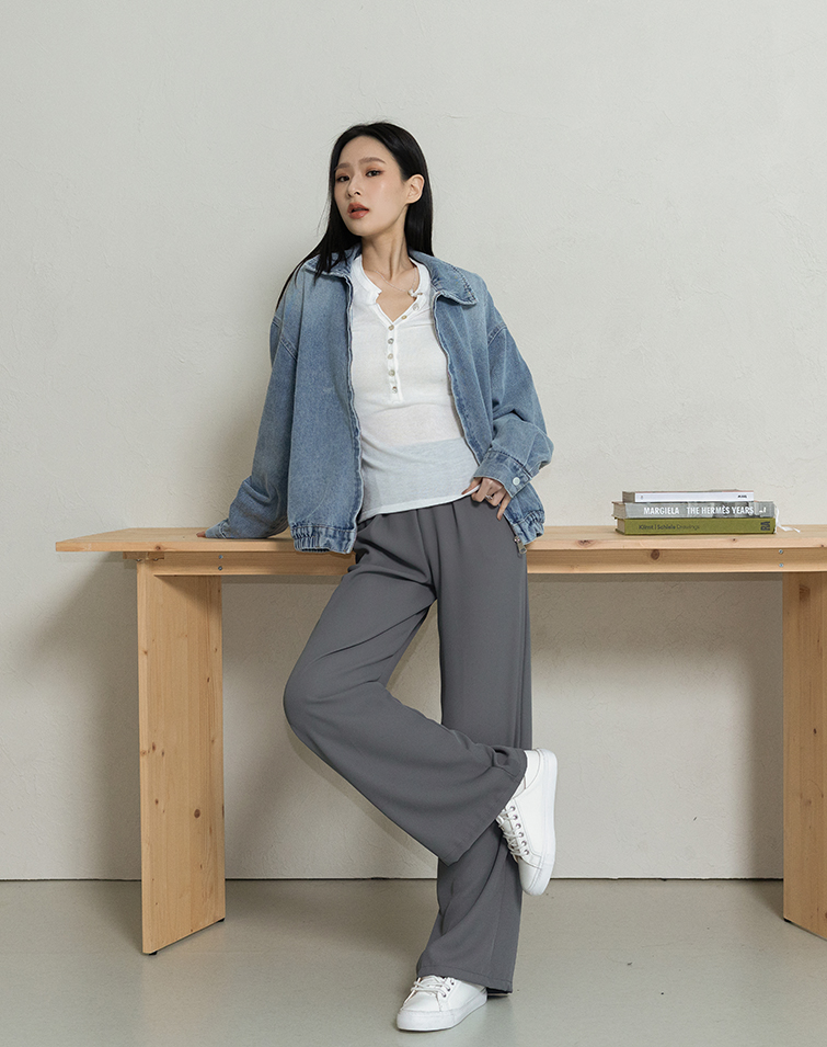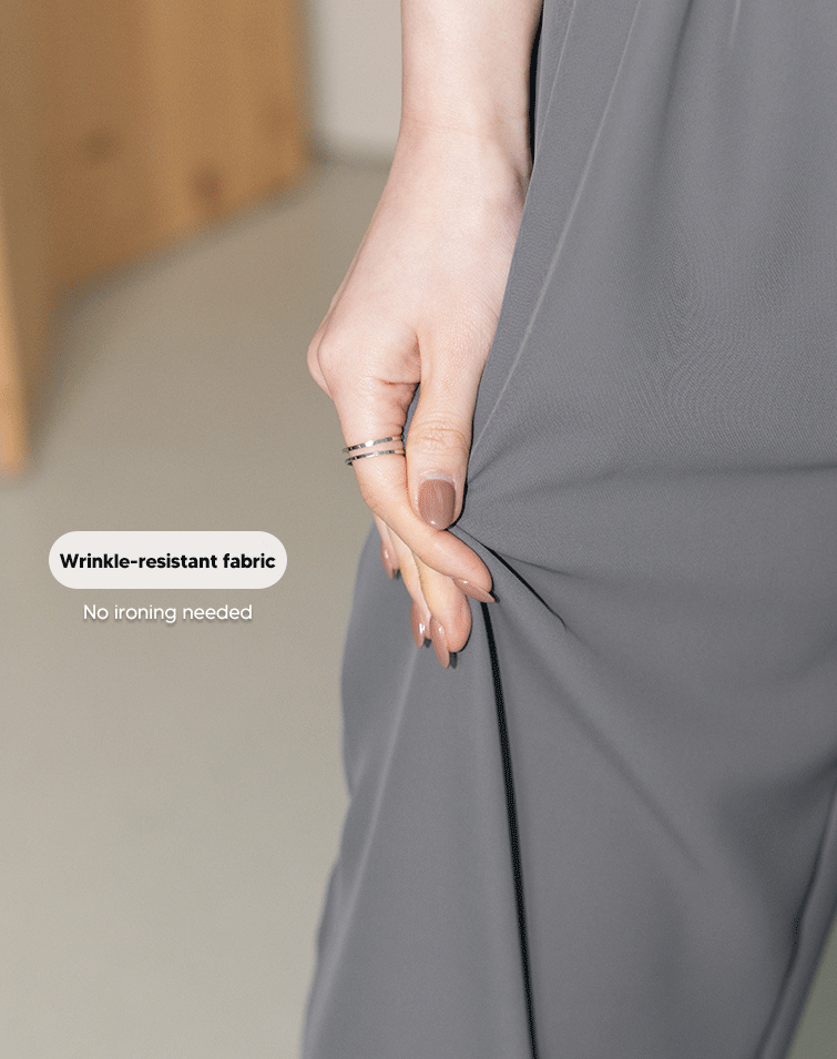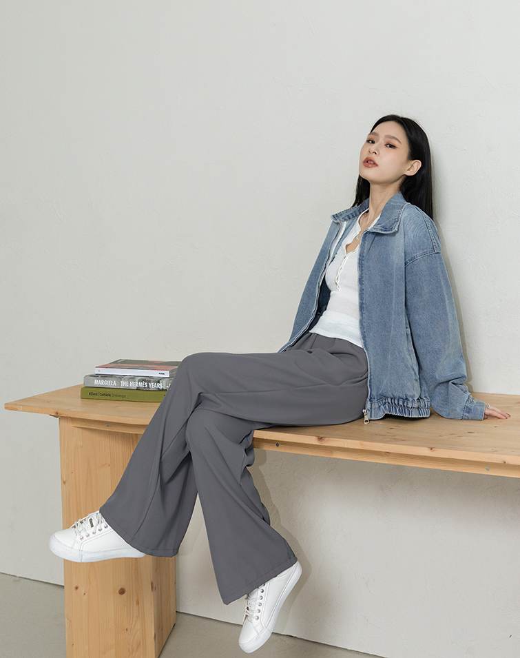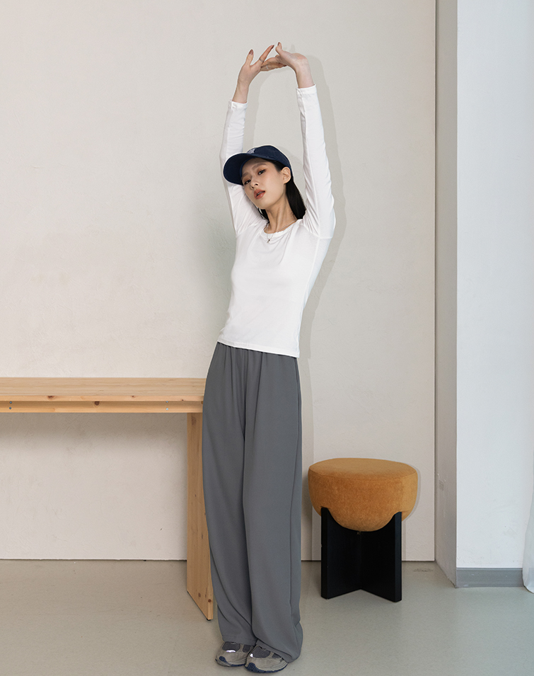 LIGHTWEIGHT PLAIN ELASTIC WIDE PANTS