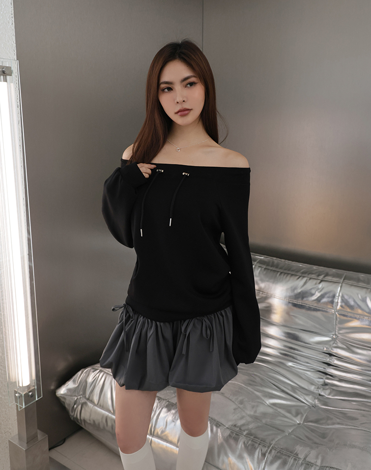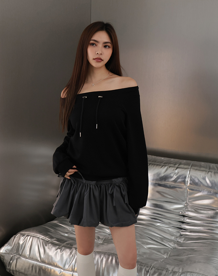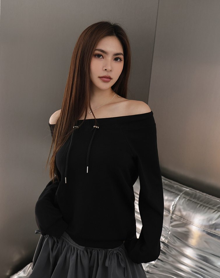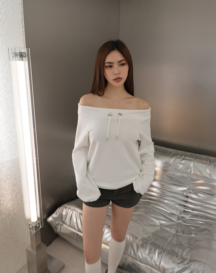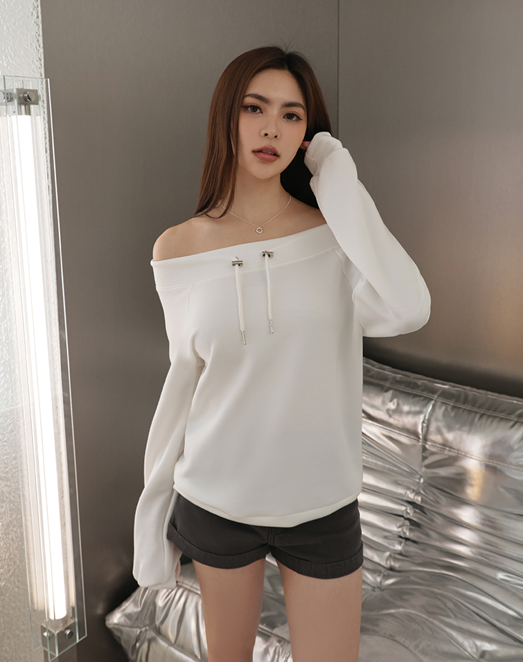 MIT BREEZY COTTON OFF-SHOULDER DRAWSTRING TOP