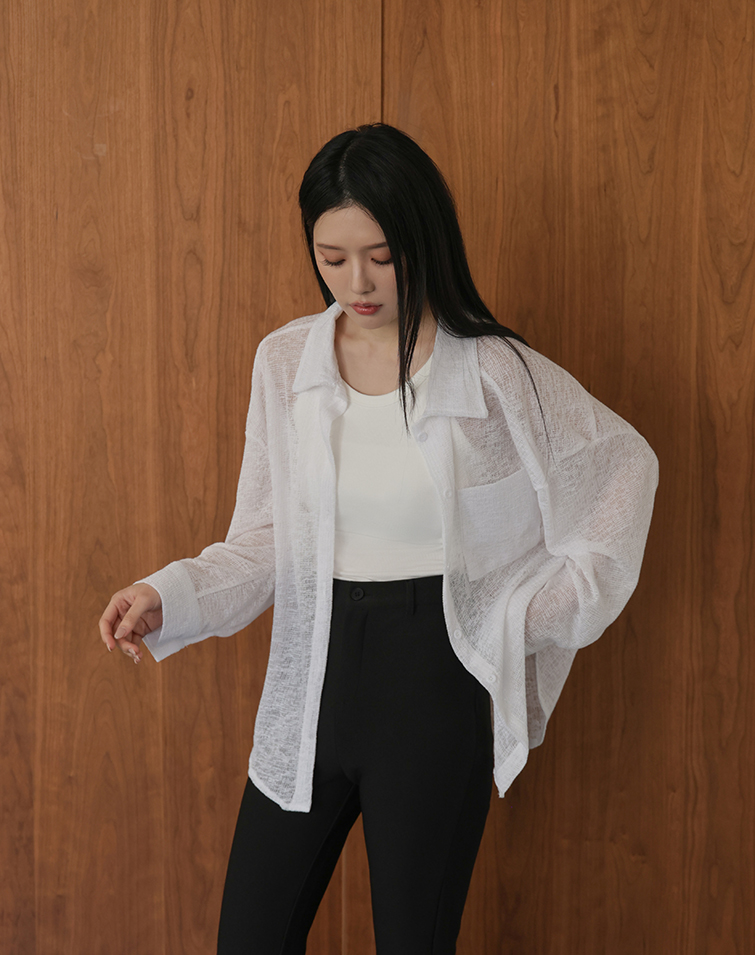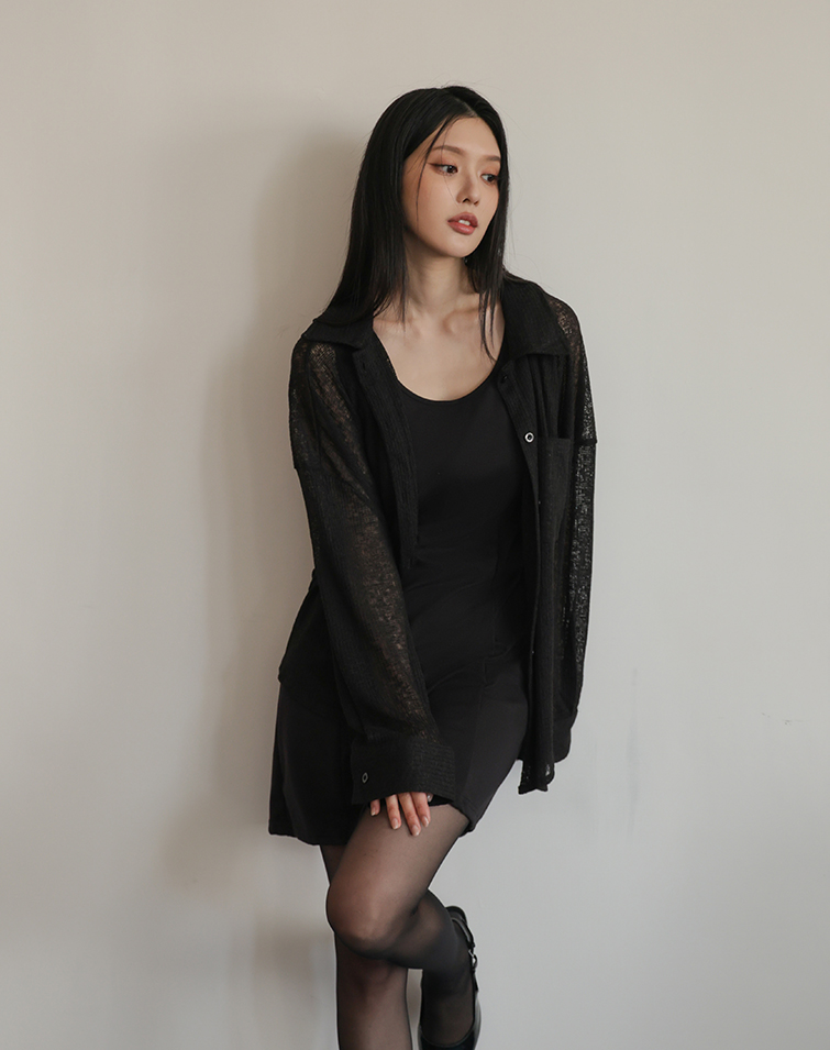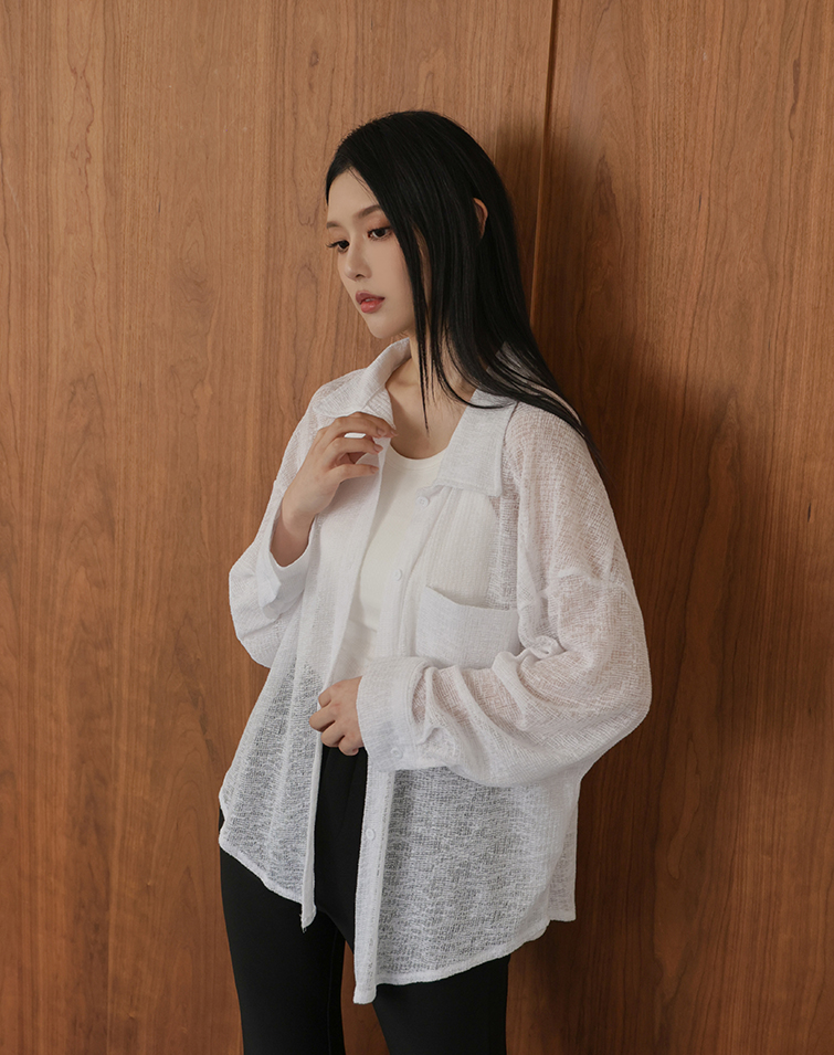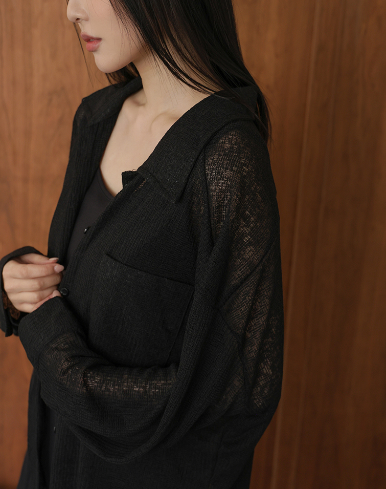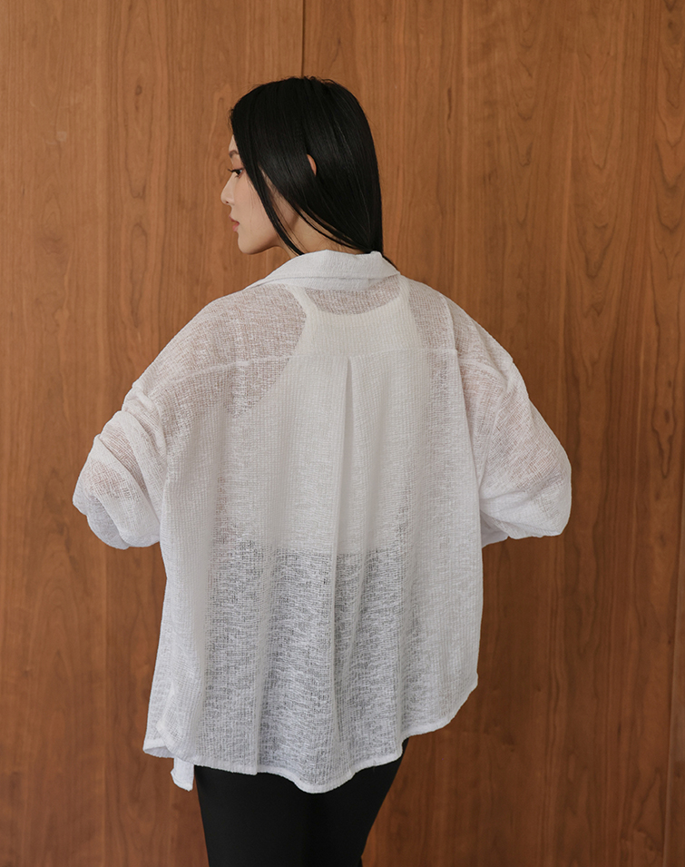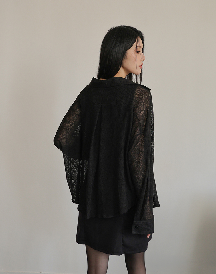 SEMI-SHEER SOFT-KNIT COLLARED SHIRT