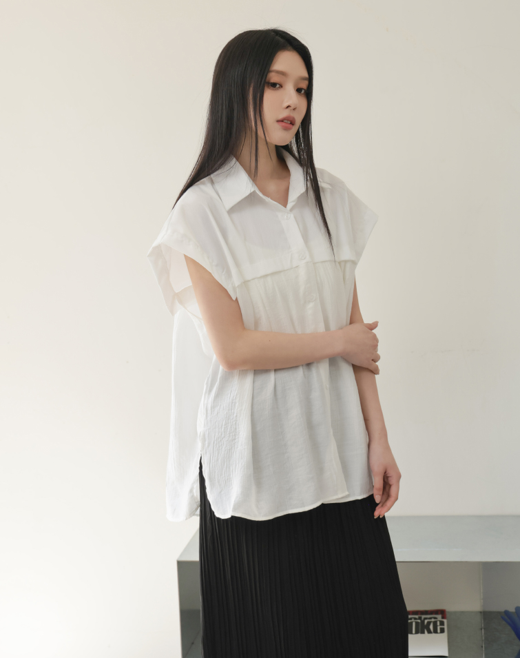 ELEGANT LAYERED PATCHWORK CAP-SLEEVE SHIRT