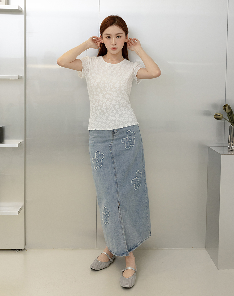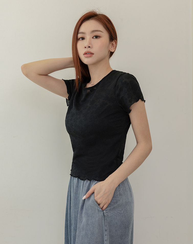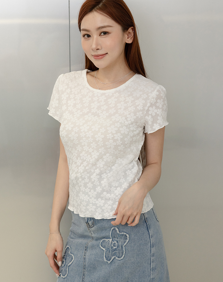FRENCH FLORAL LACE TRIM TEE