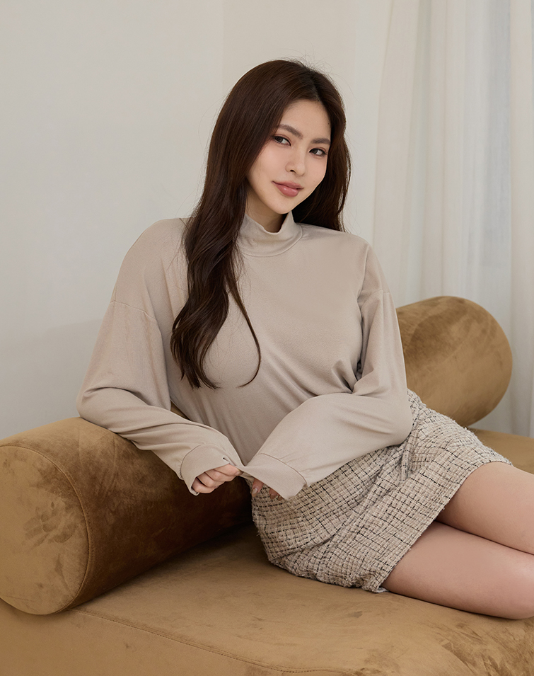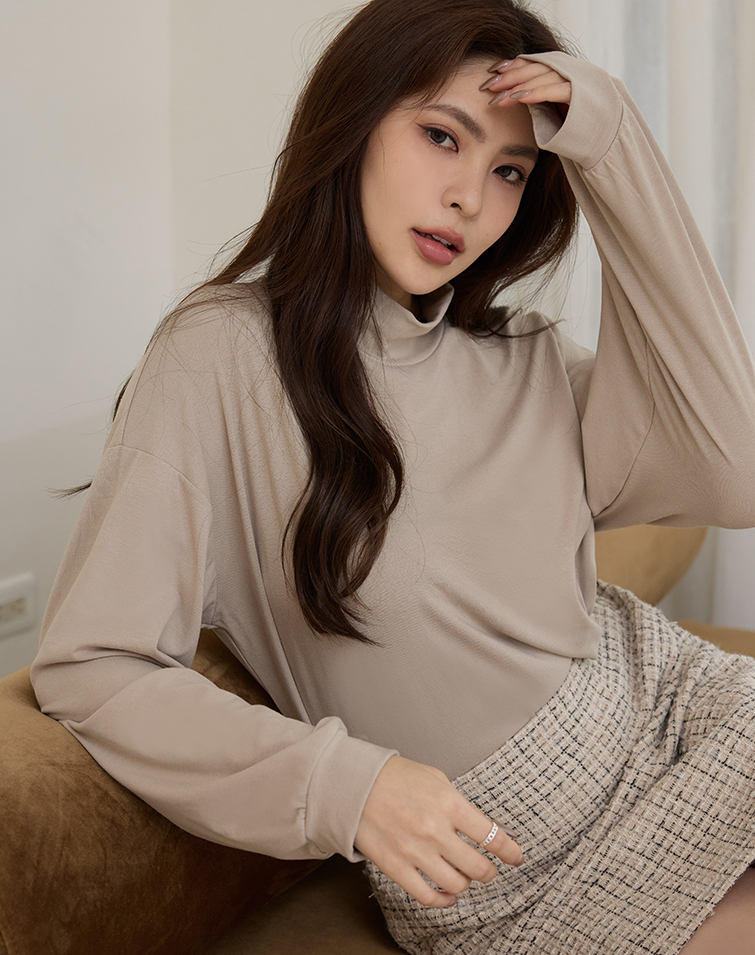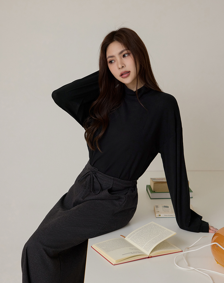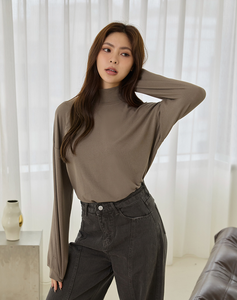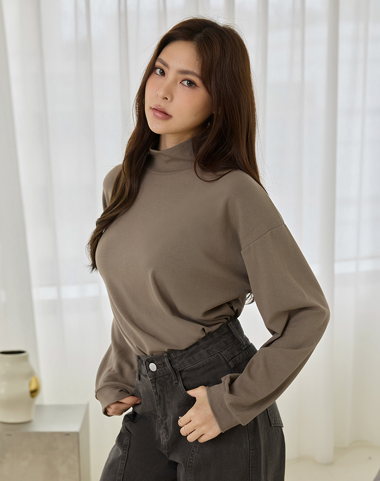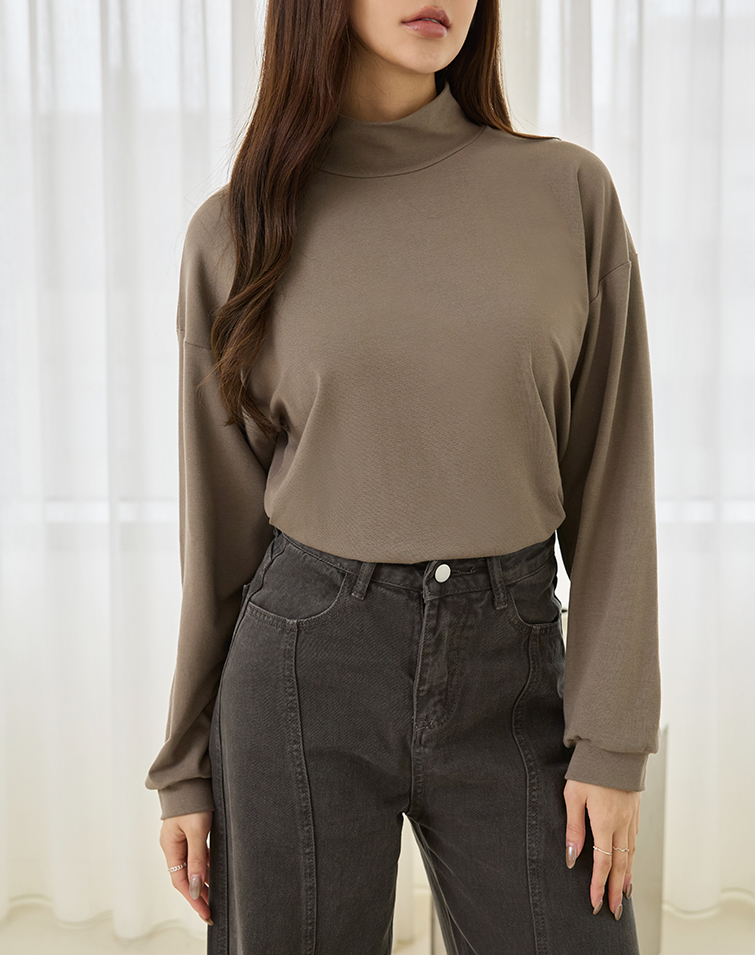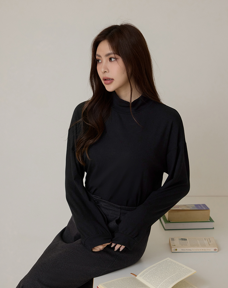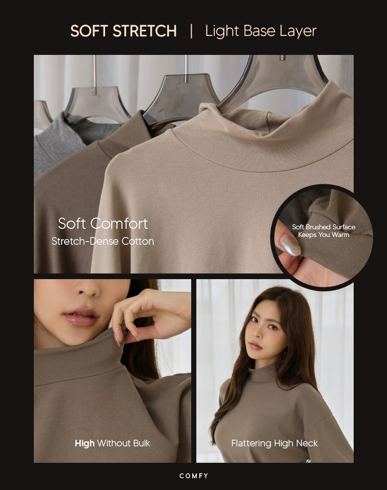 MIT STRETCH COMFORT MOCK NECK LONG-SLEEVE TOP
