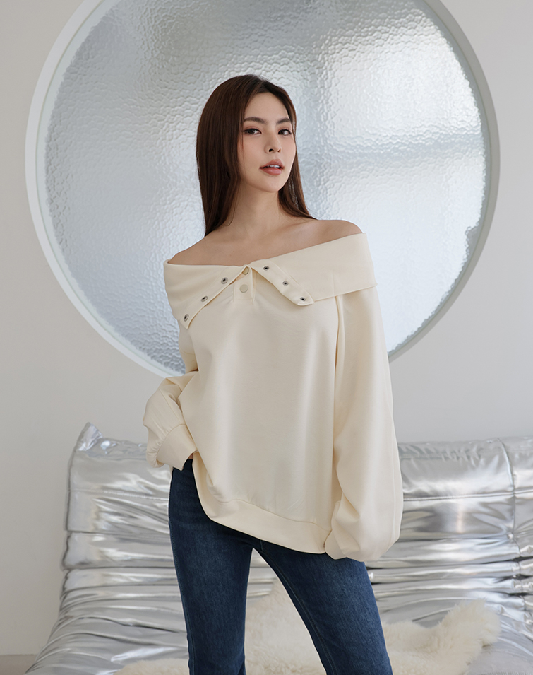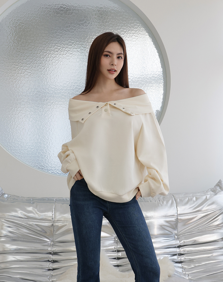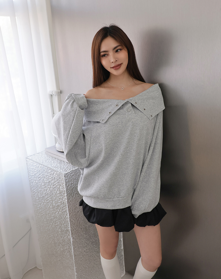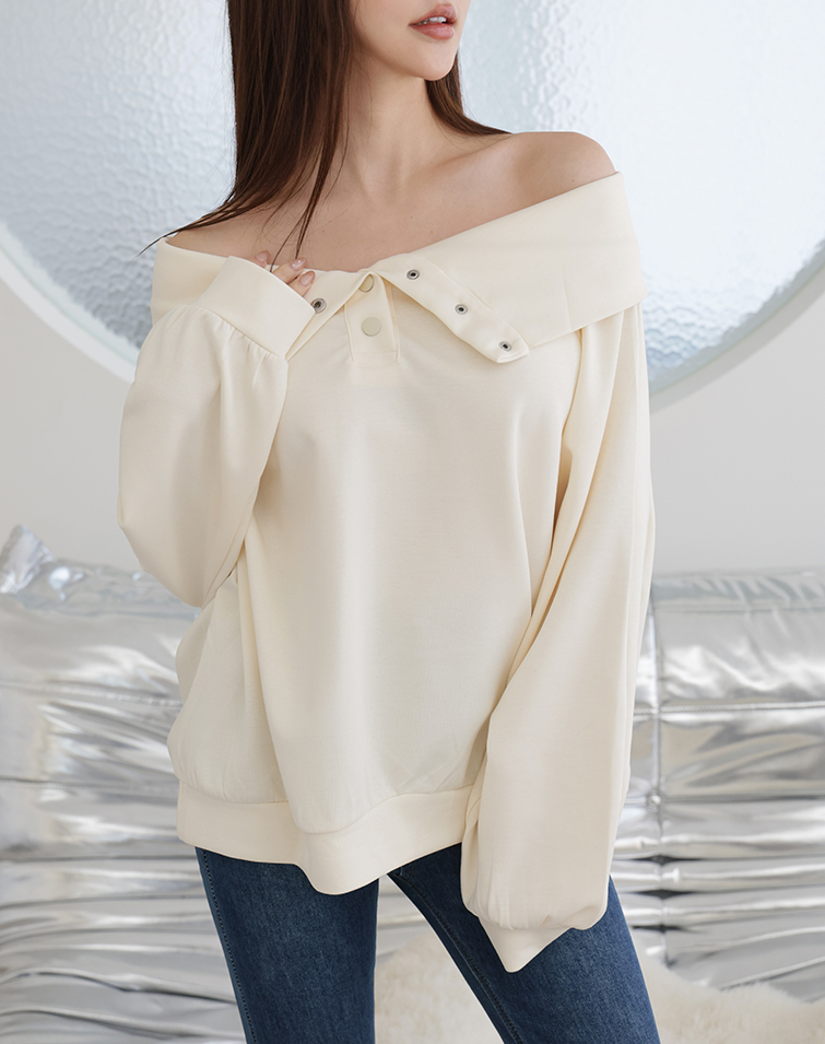 Buttoned / Large Fold-Over Collar / Loose & Slimming