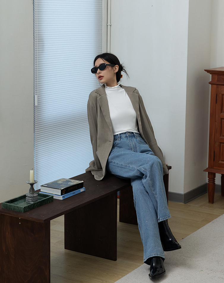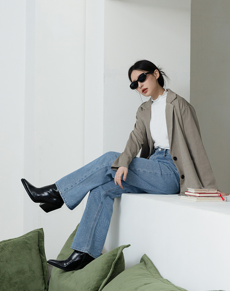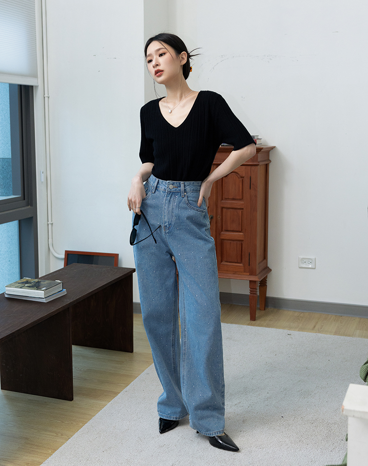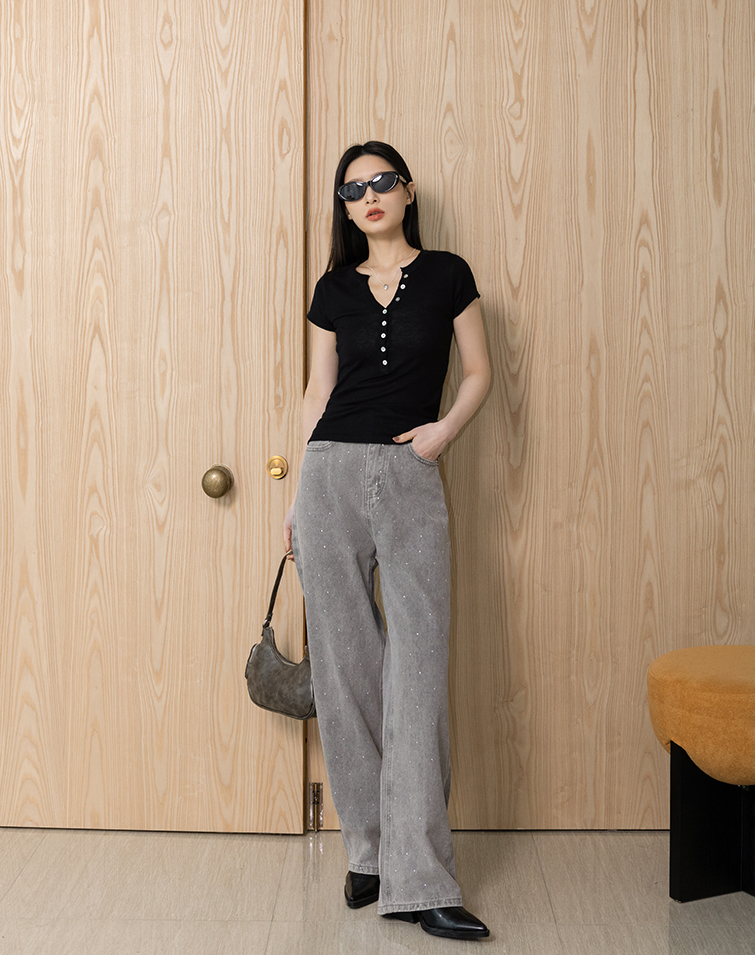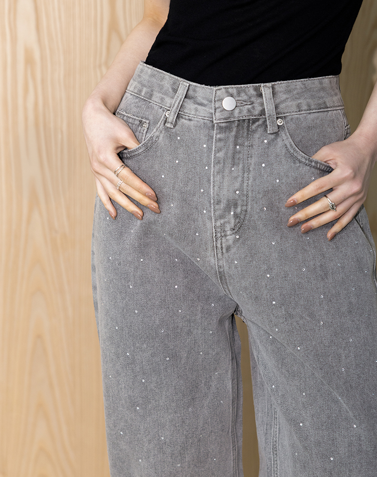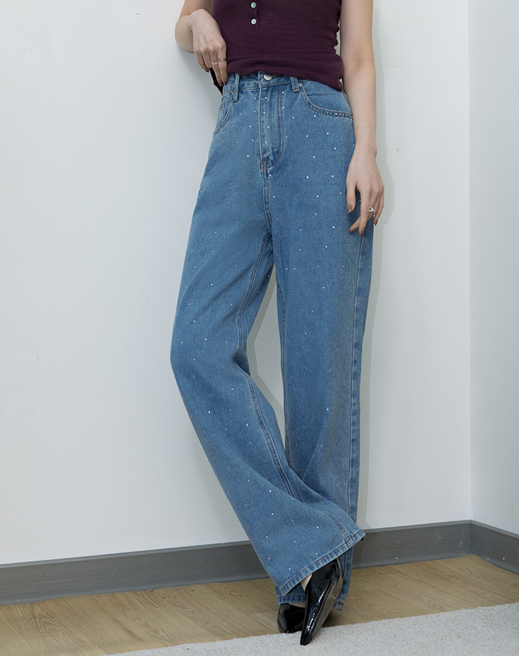 Rhinestone Detail / Slimming Fit / Straight-Leg