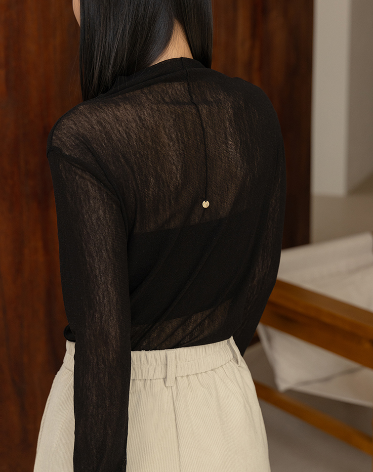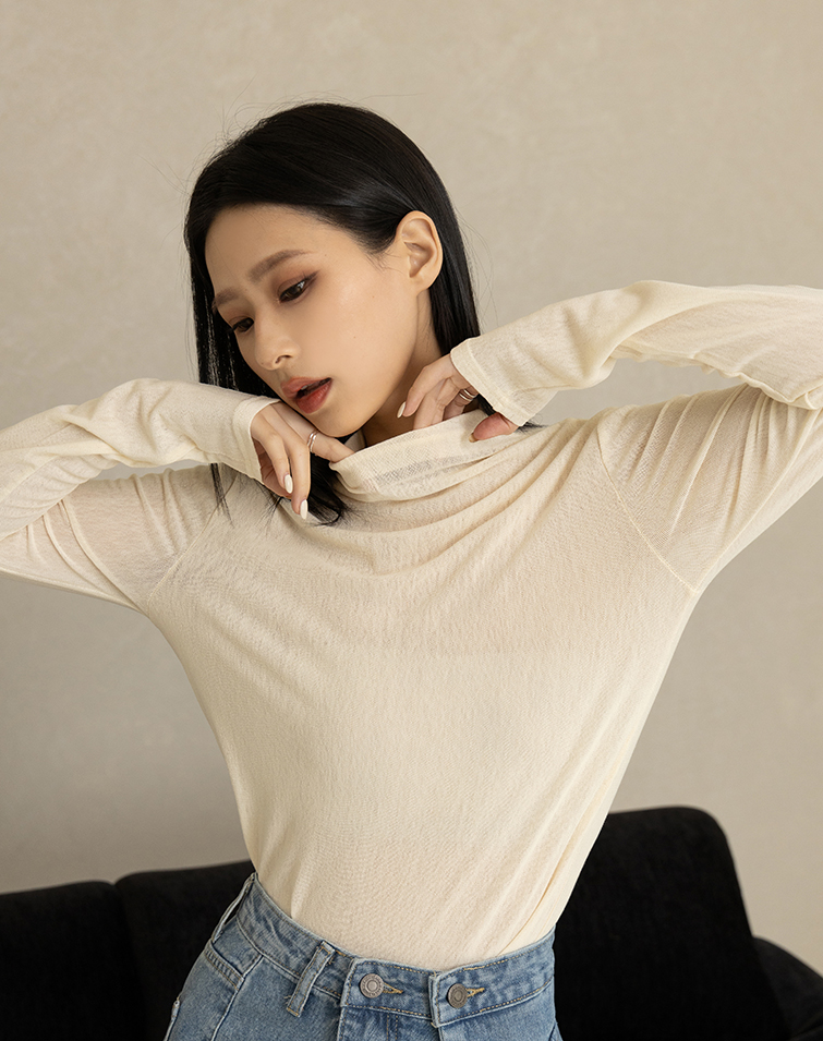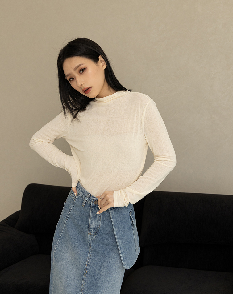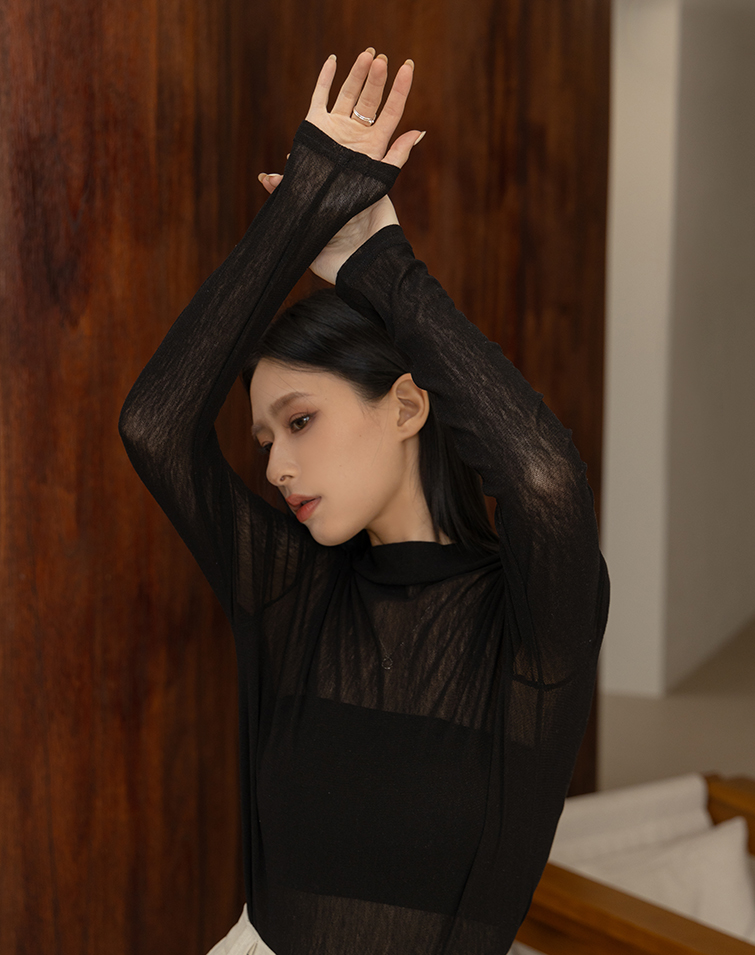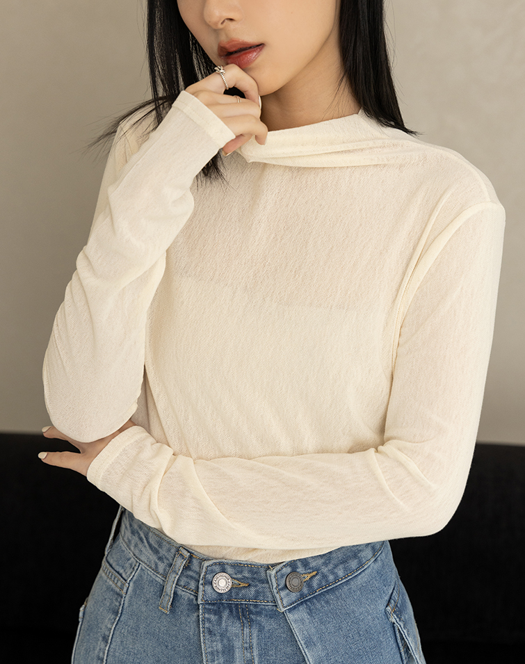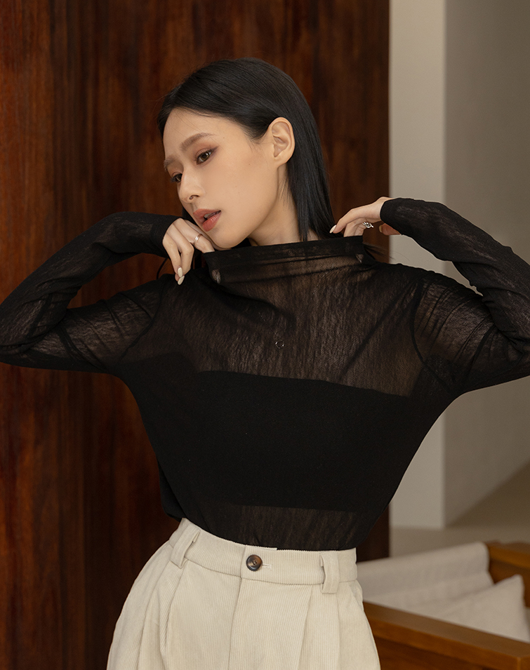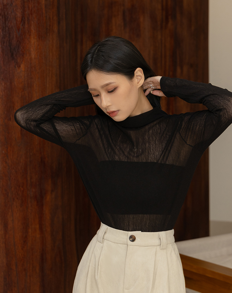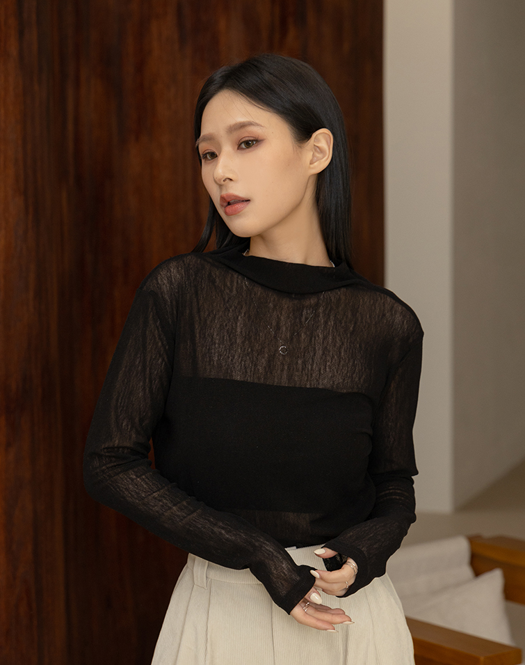 SEMI-SHEER HIGH NECK LAYERING TOP