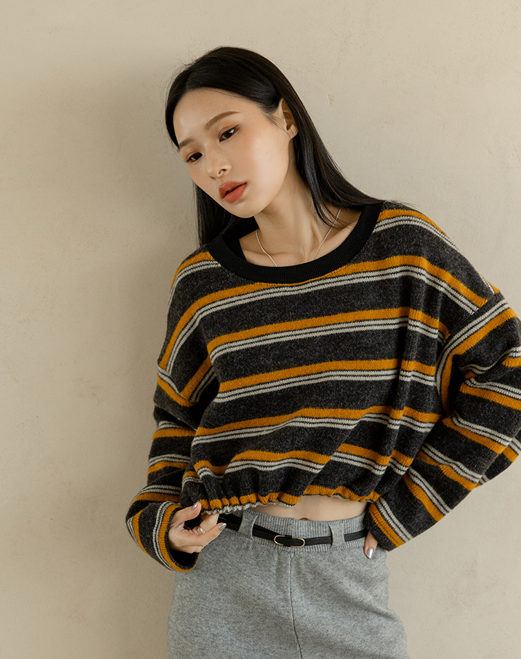 Loose & Concealing / Single Drawstring Hem / Basic Crew Neck