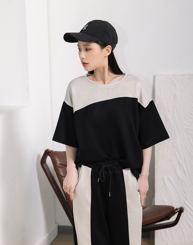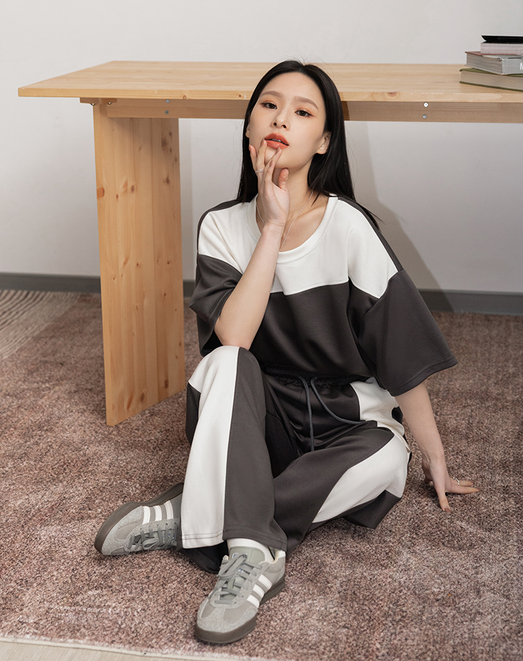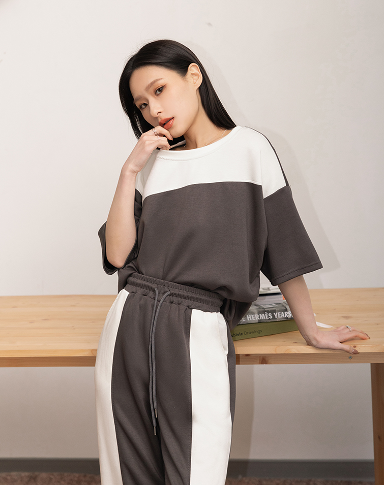 BREEZY COTTON COLORBLOCK PANTS SET