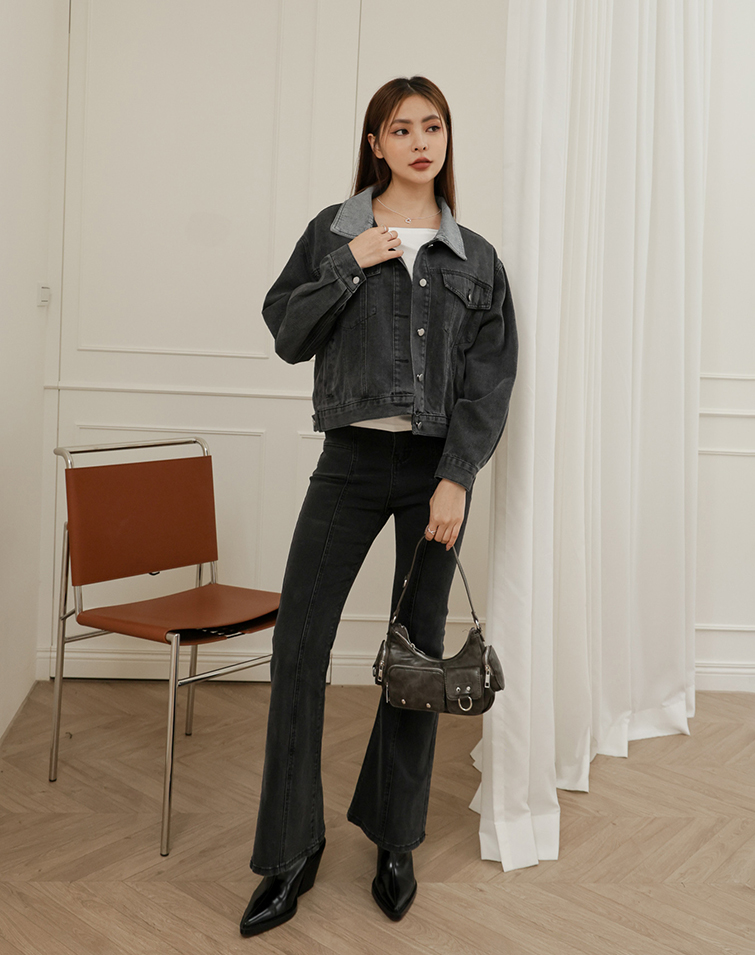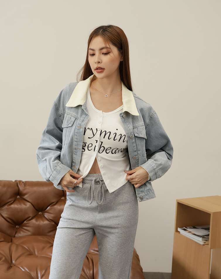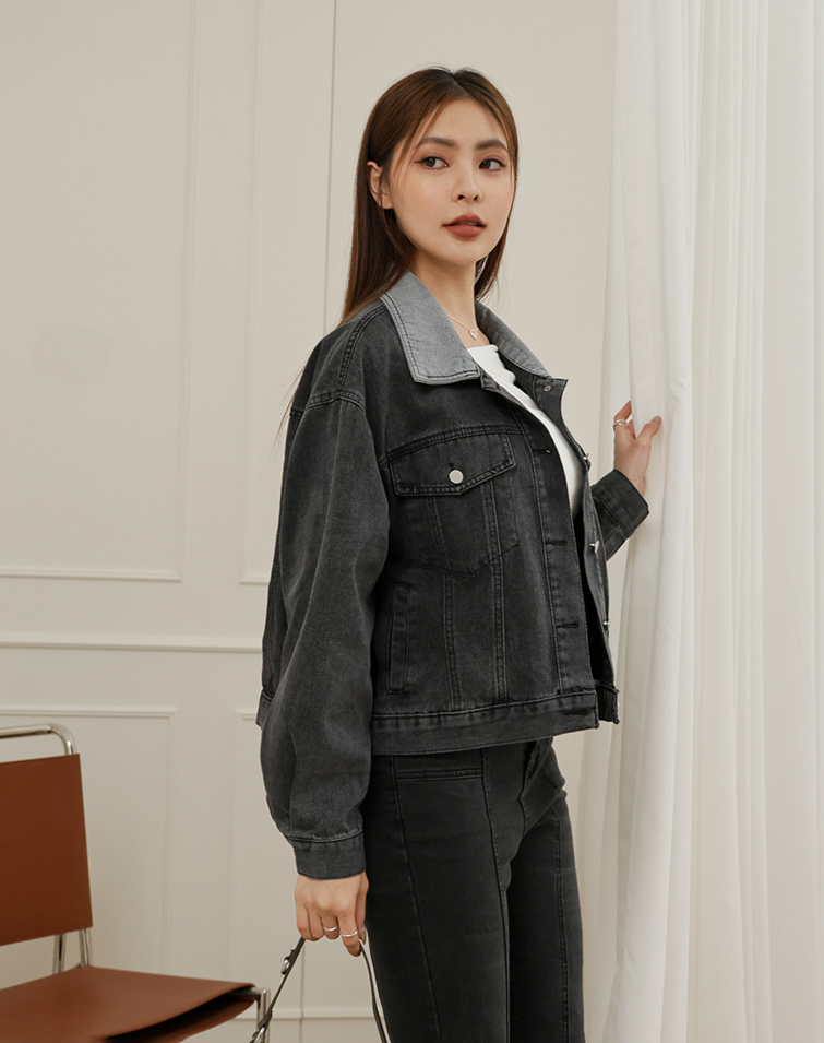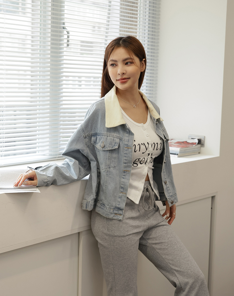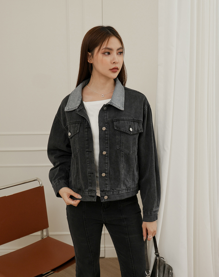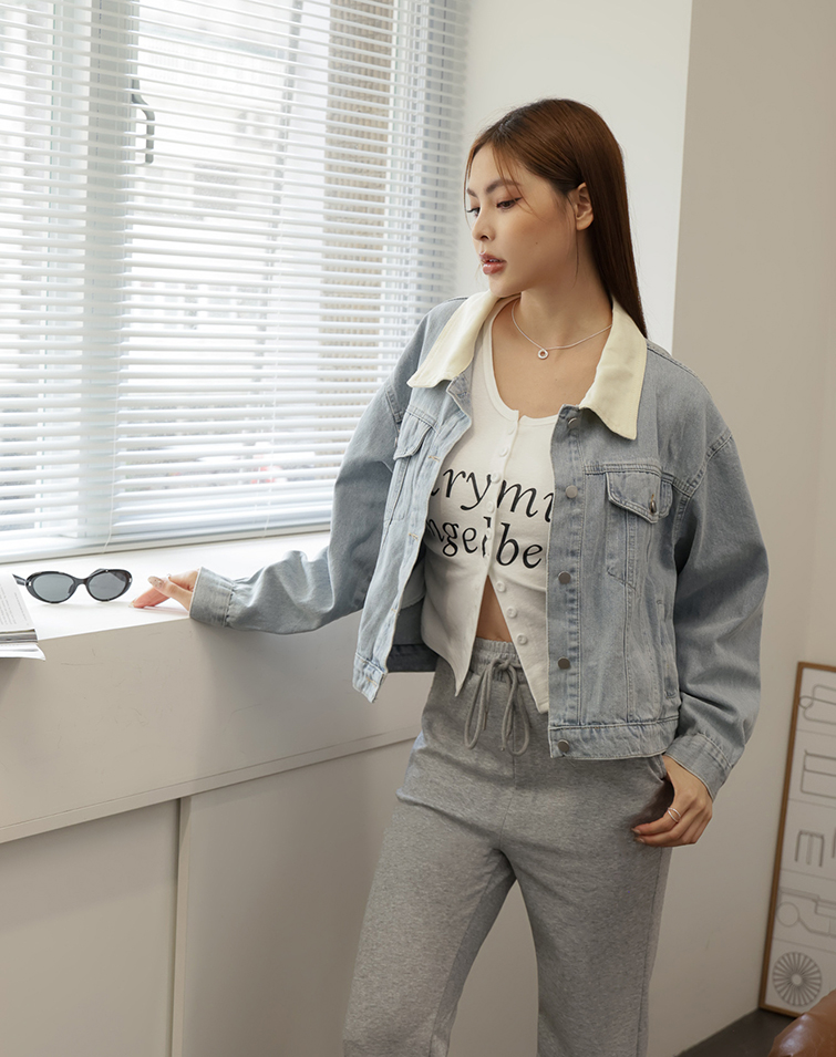 VINTAGE CONTRAST COLLAR DENIM JACKET
