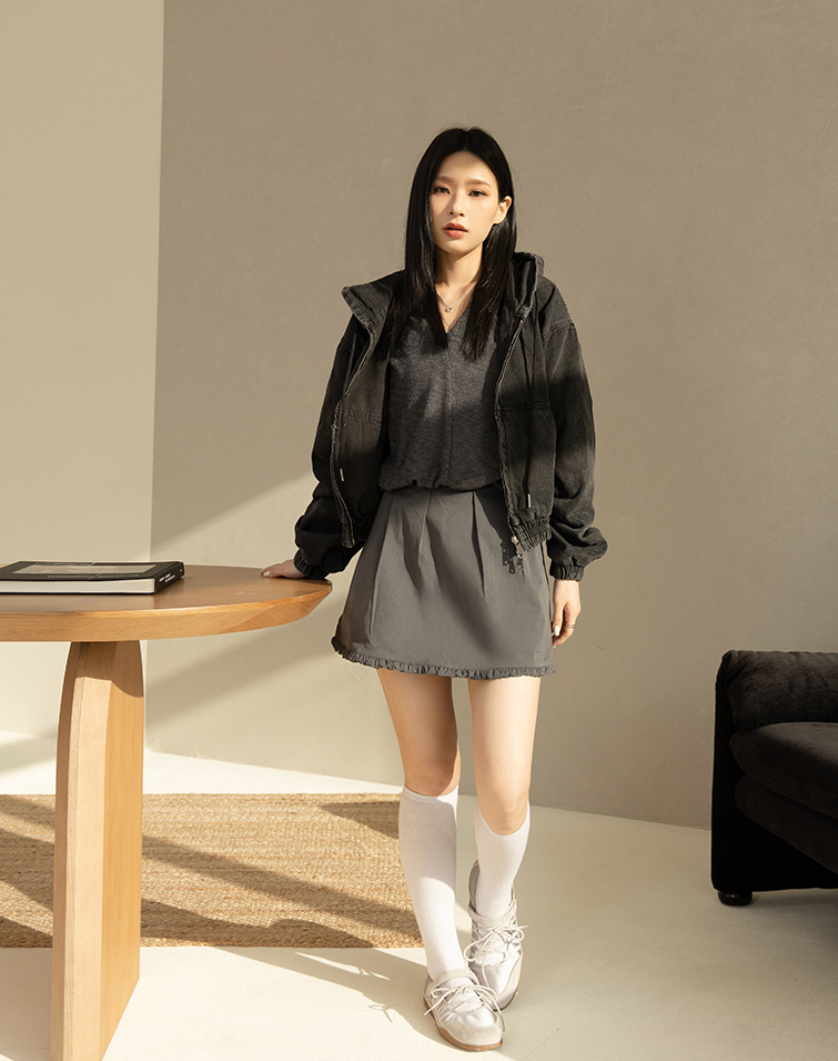 Side pockets / Two-way zipper / Elastic hem