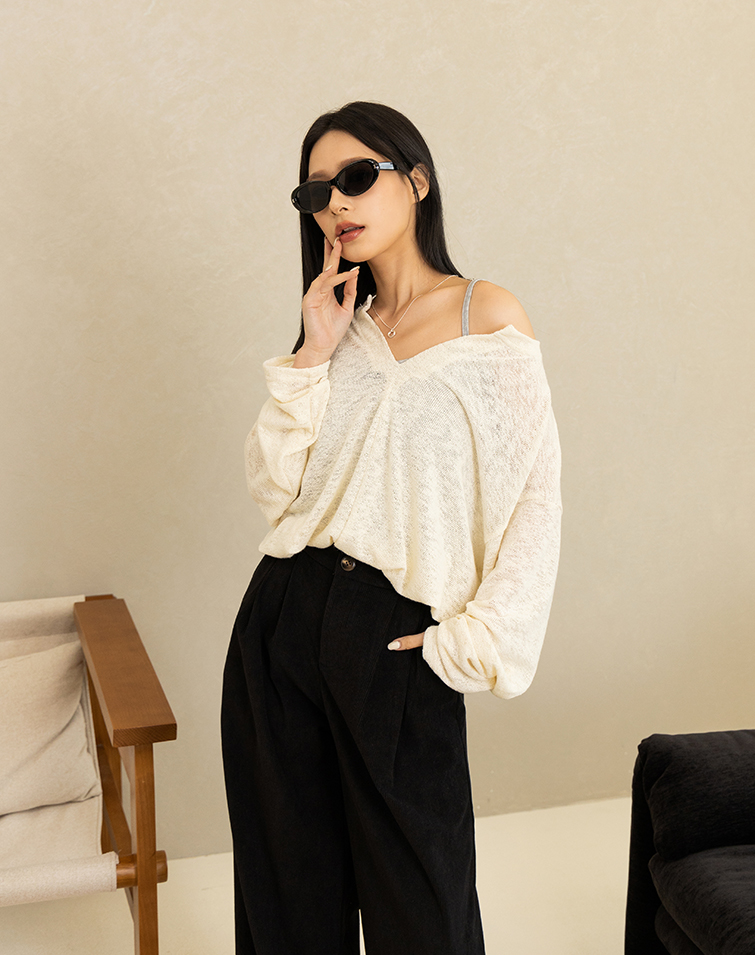 Adjustable Shoulder Straps / Sheer Knit Fabric / Elastic Hem Band