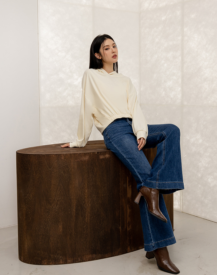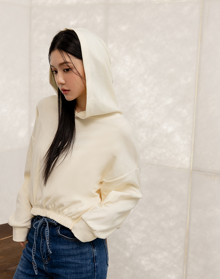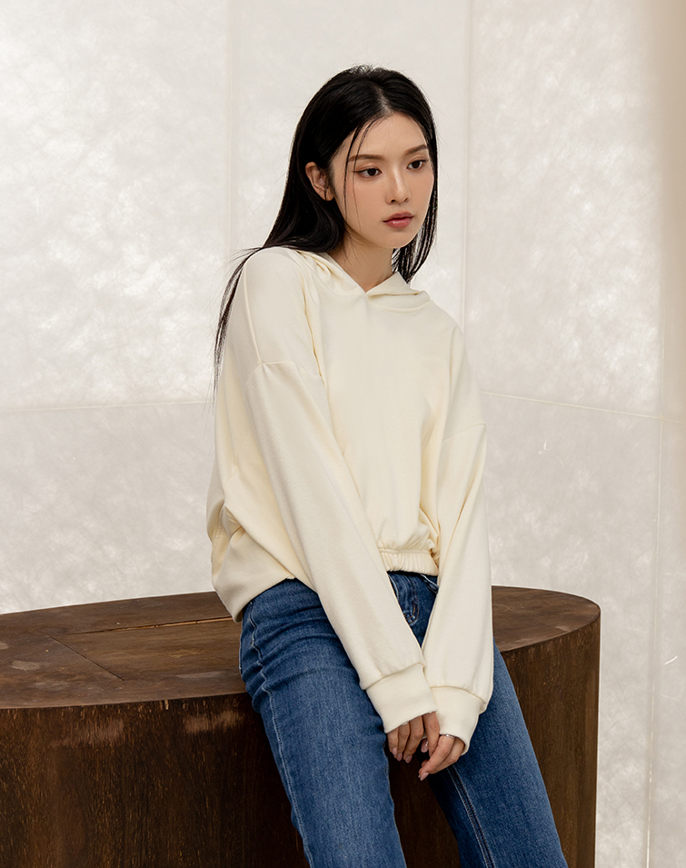 MIT SOFT-FLEECE DRAWSTRING WAIST HOODED TOP