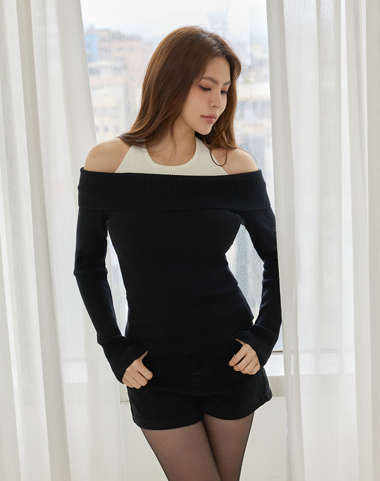 SOFT RIBBED OFF-SHOULDER KNIT TOP
