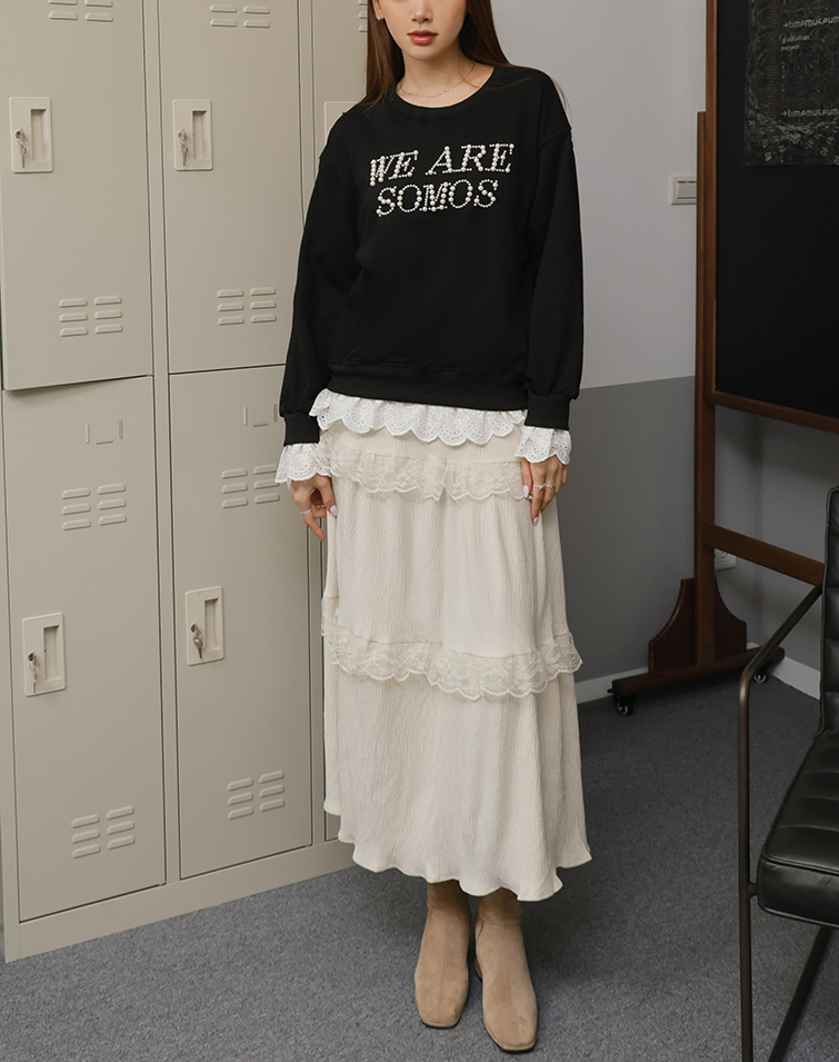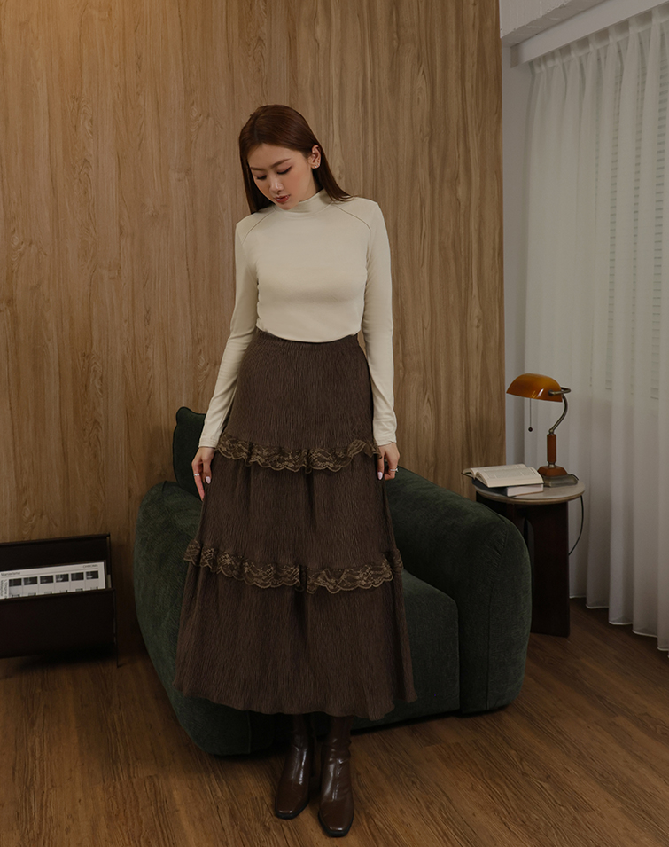 Full elastic waistband / Smooth fit without pockets / Mixed fabric design