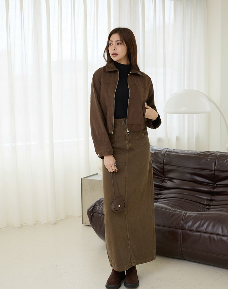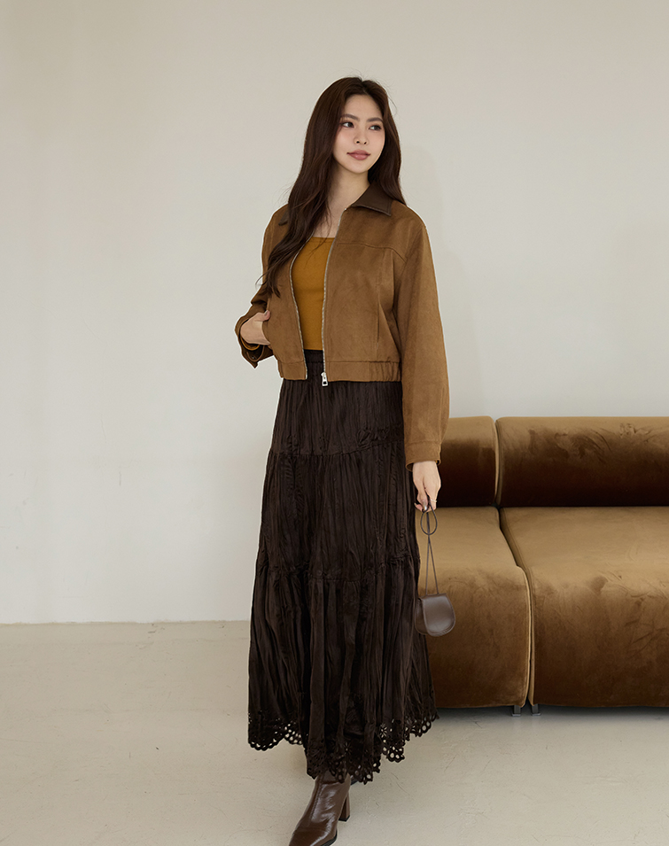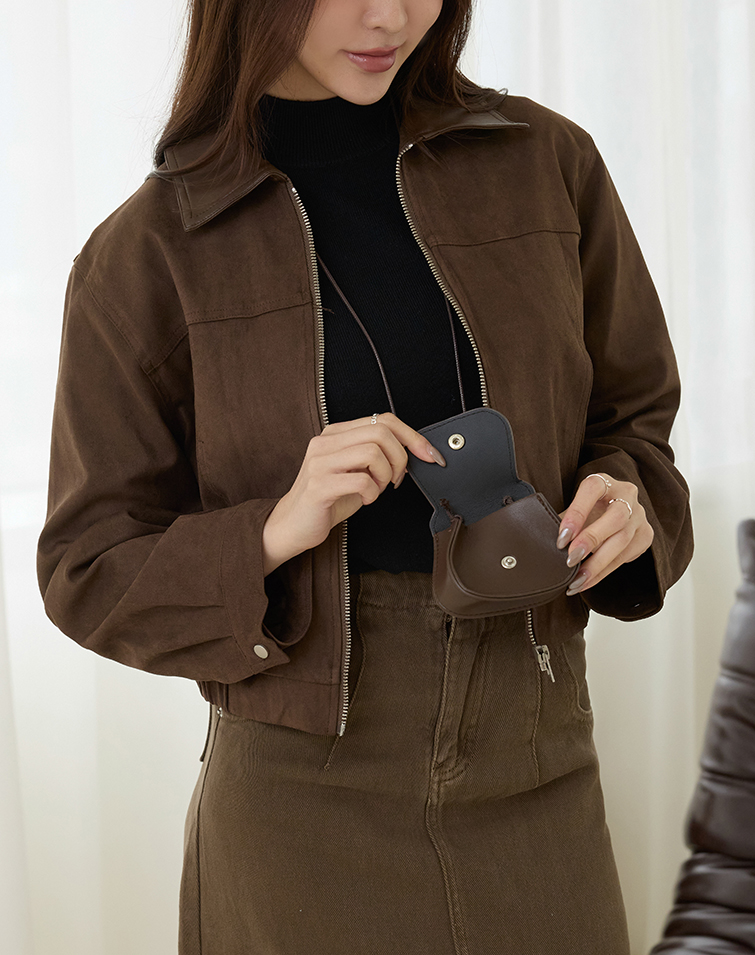 Includes small leather pouch / Side pockets / Elastic hem / Lined
