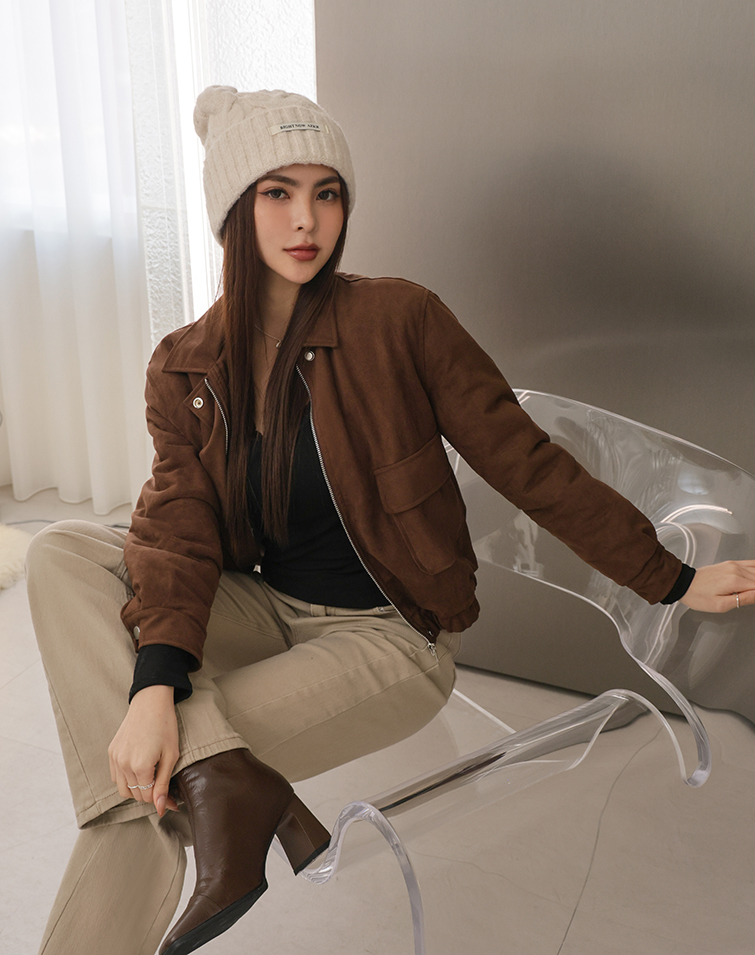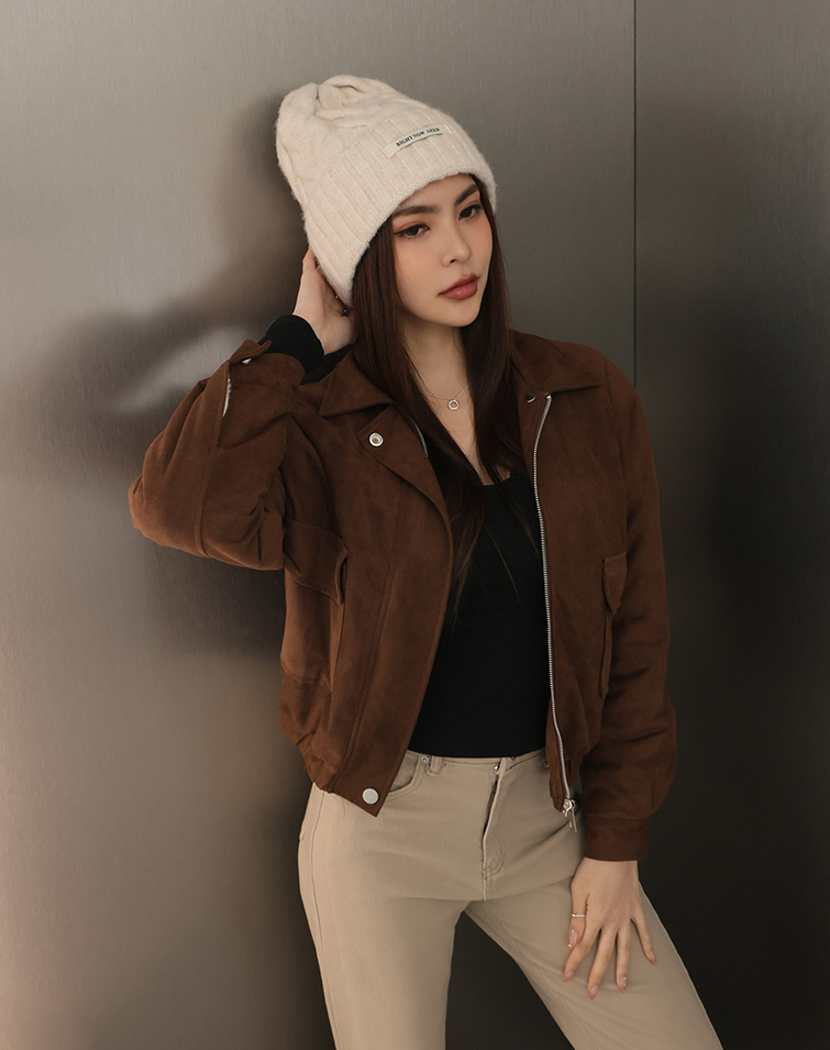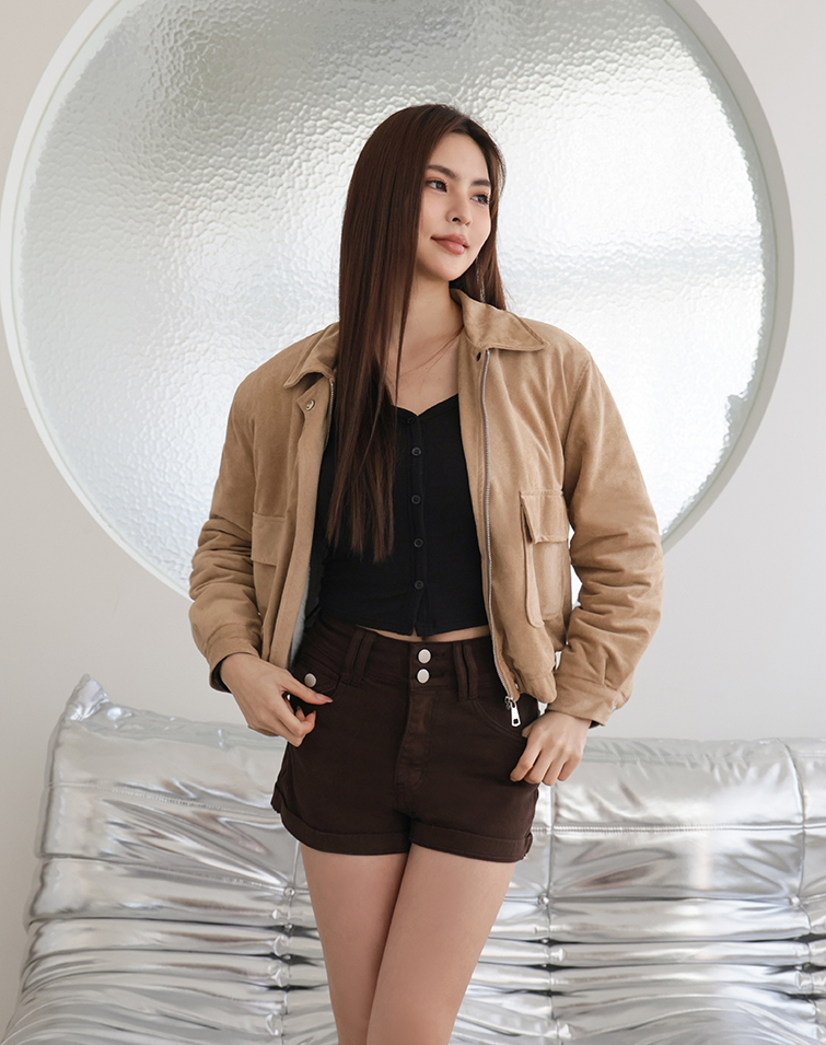 CREAMY FLEECE SUEDE COLLAR JACKET