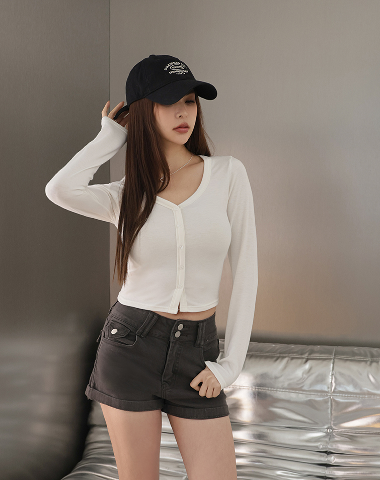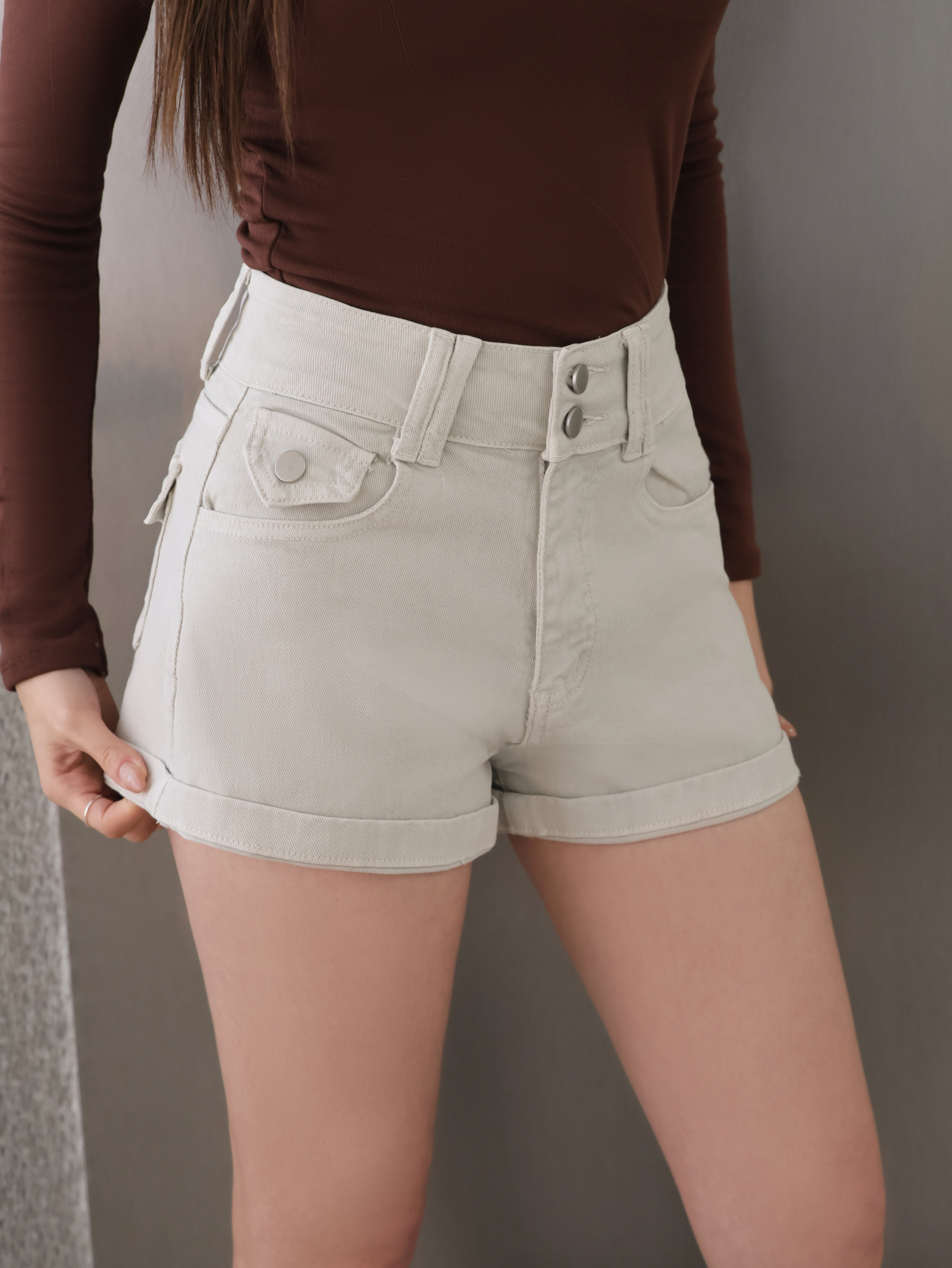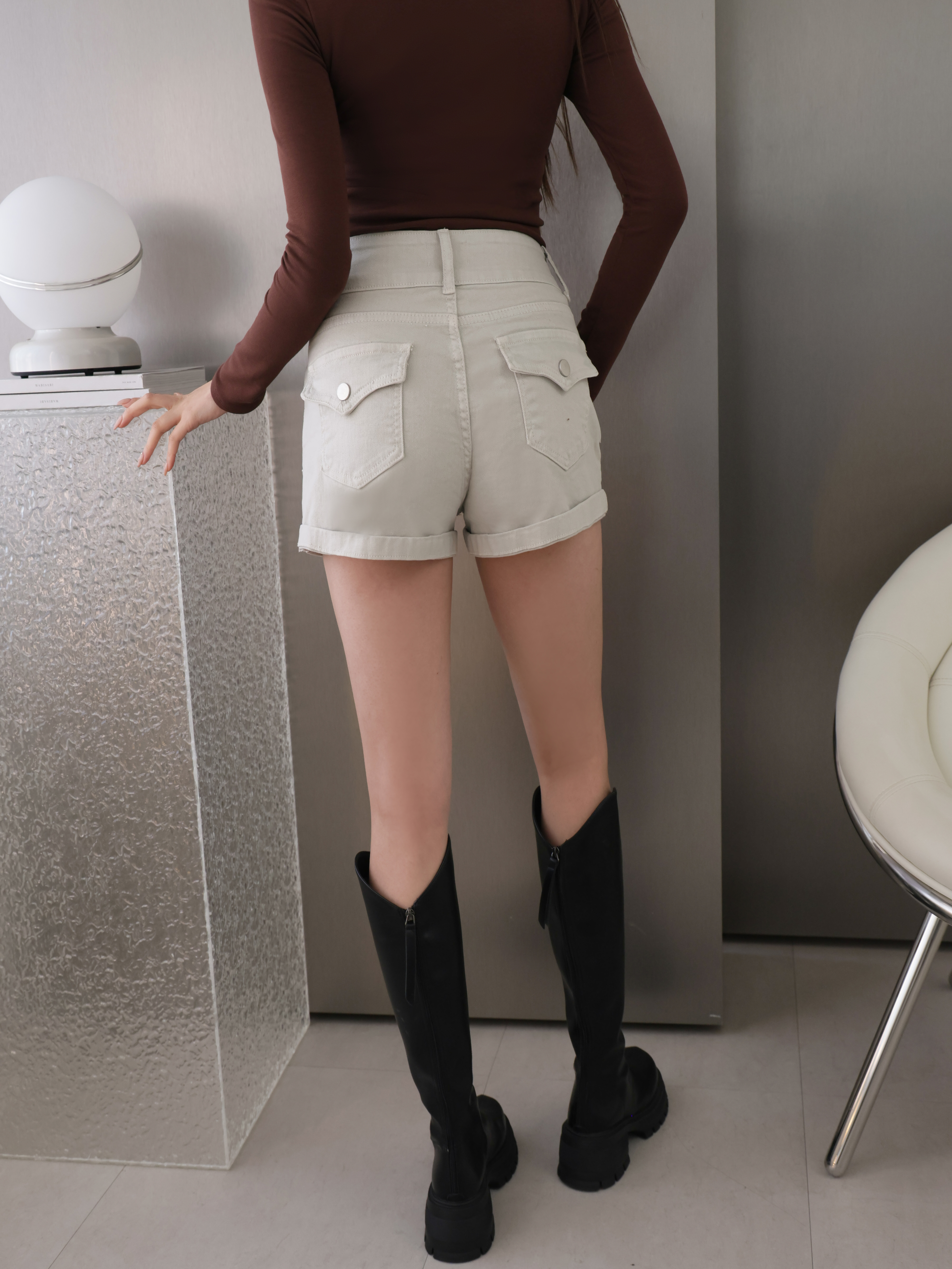 Front & Back Pockets / Double Button Design / Cuffed Hem