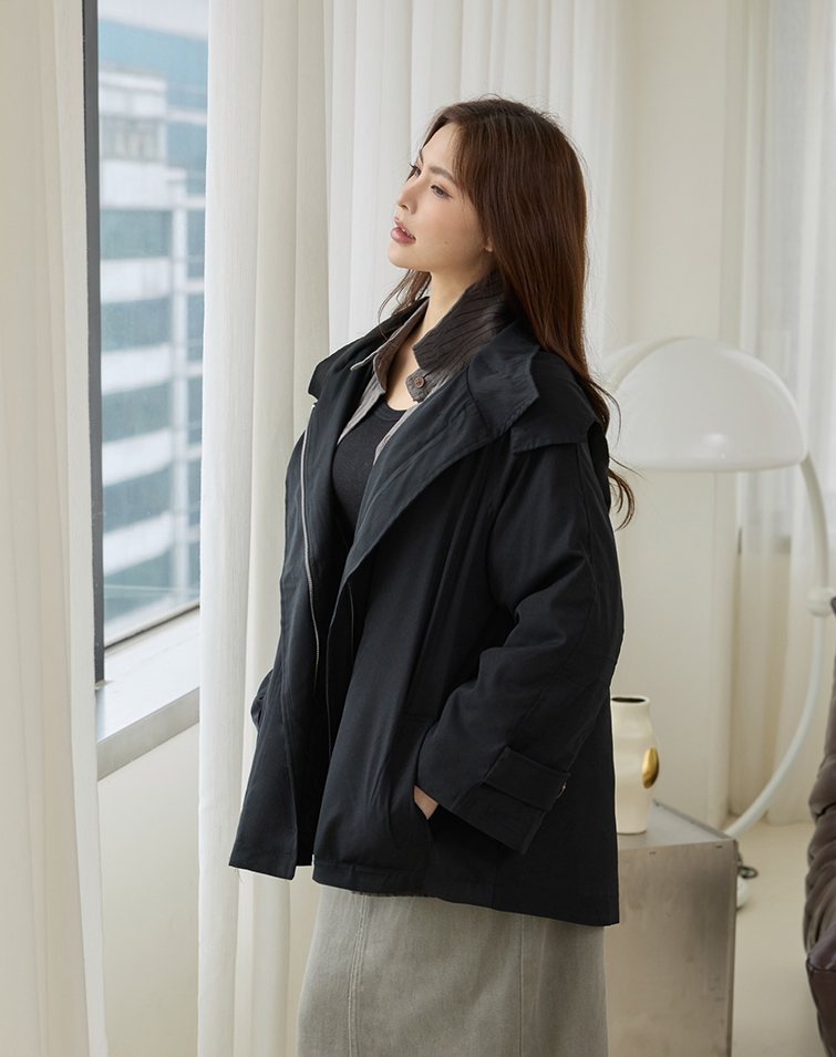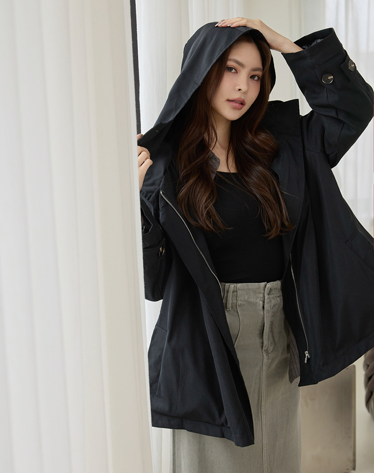 Detachable hood / Side pockets / Lined / Adjustable cuffs