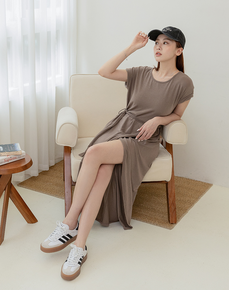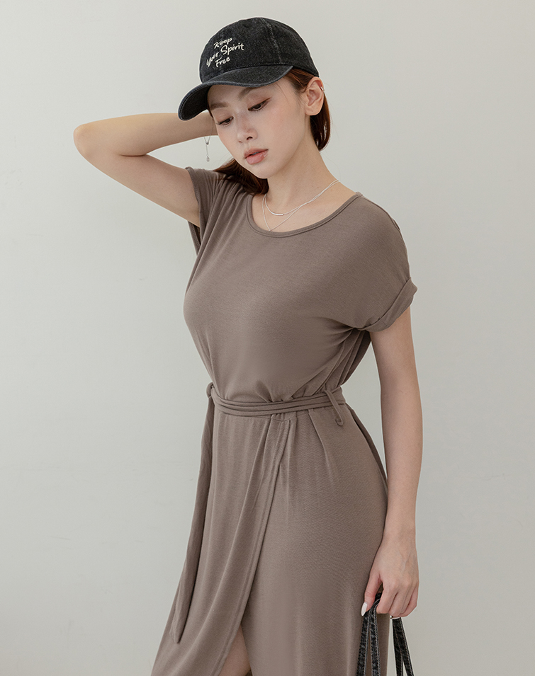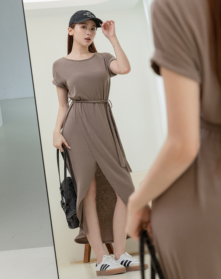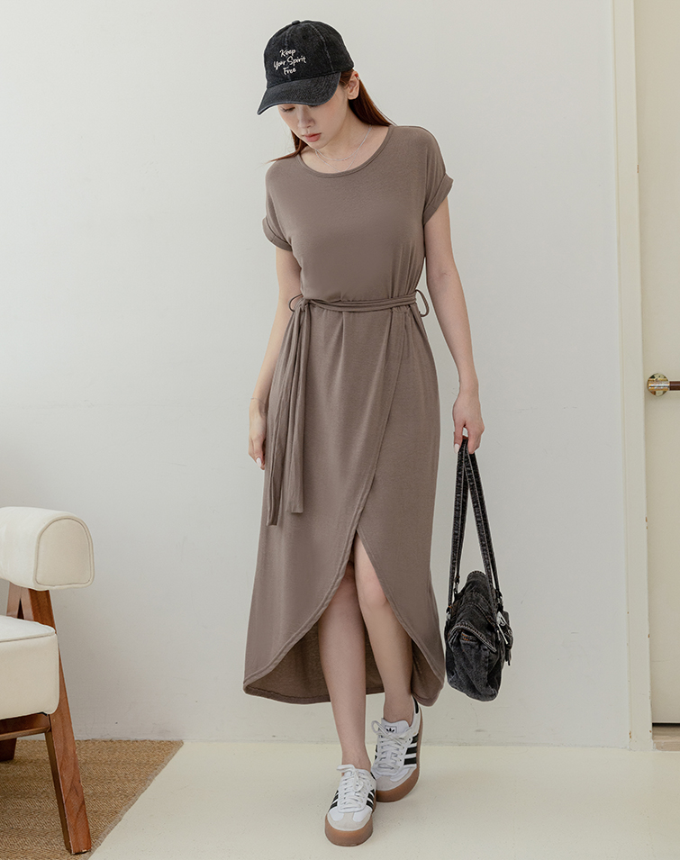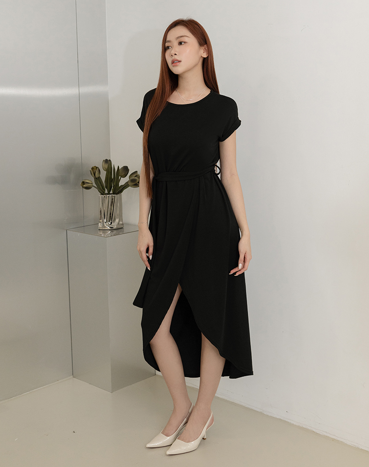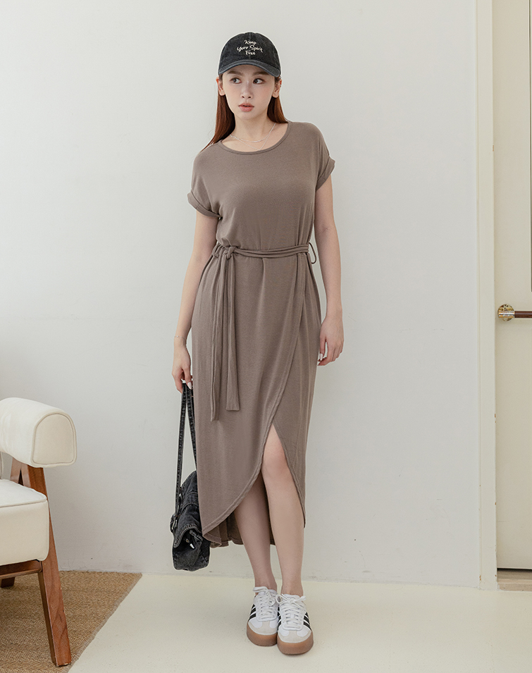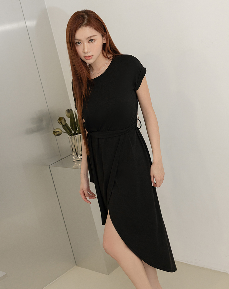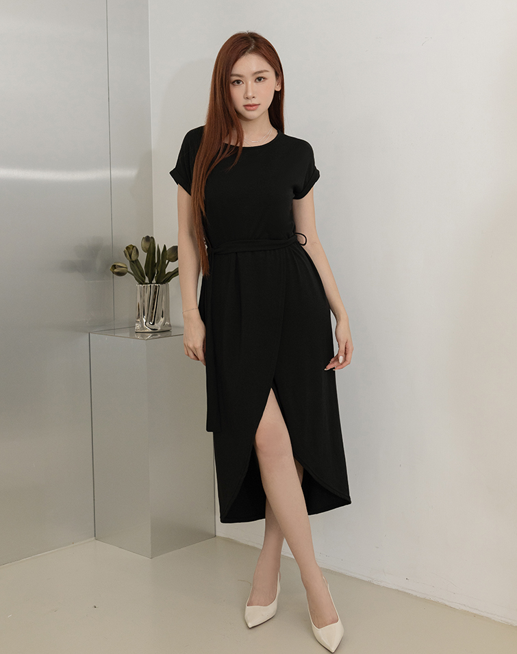 Comes With Tie / Folded Sleeve Cuffs / Front Slit / Tummy-Hiding Fit