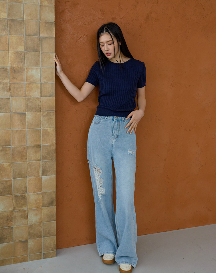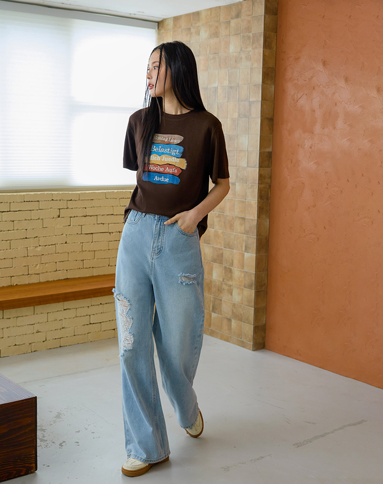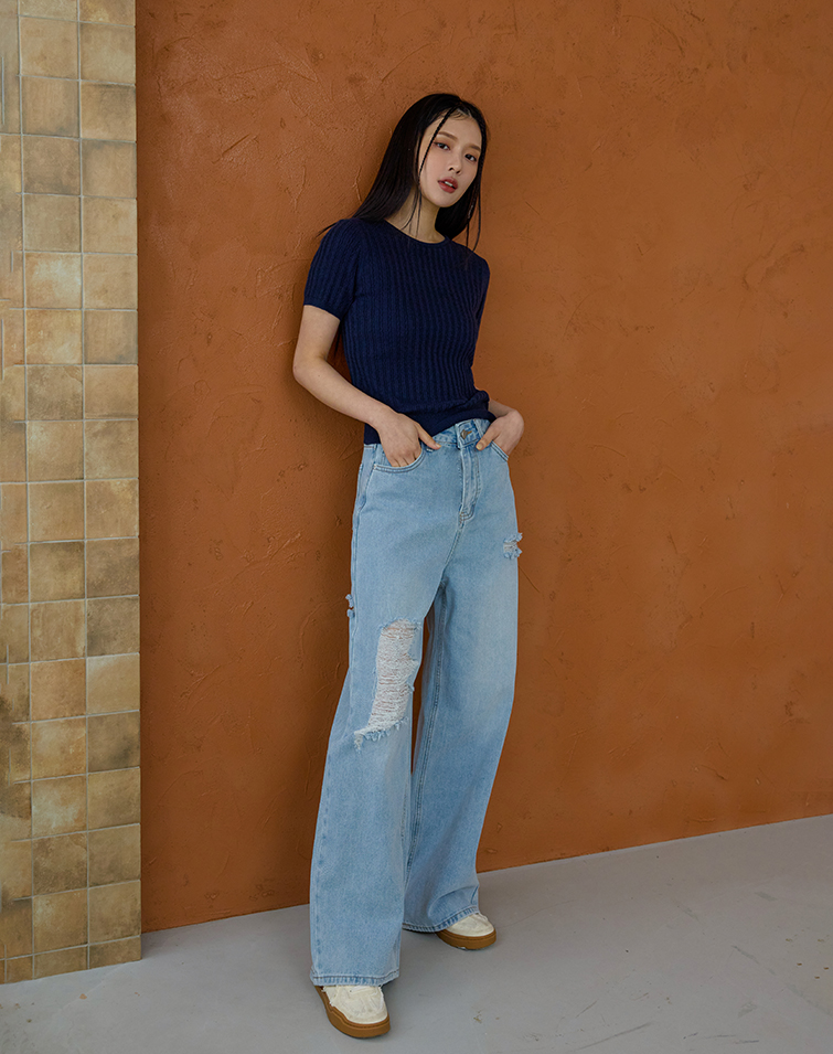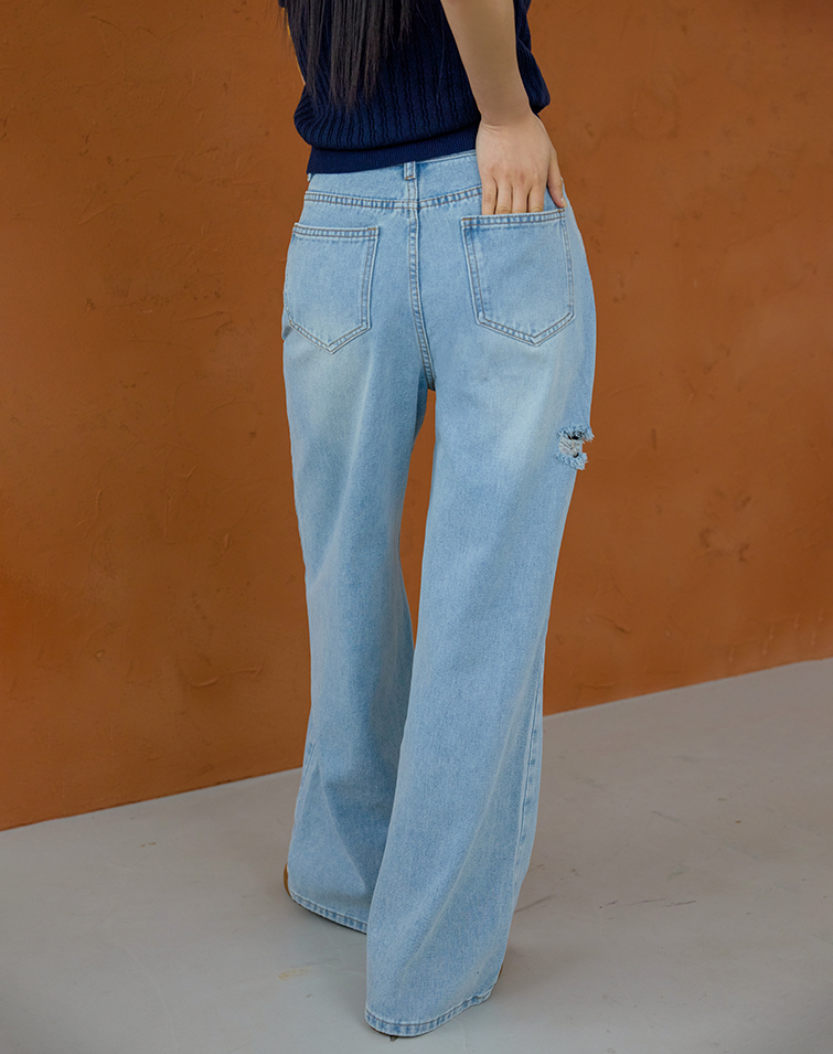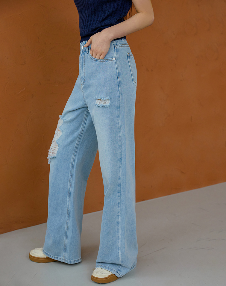 DISTRESSED WHITE-WASHED DENIM JEANS