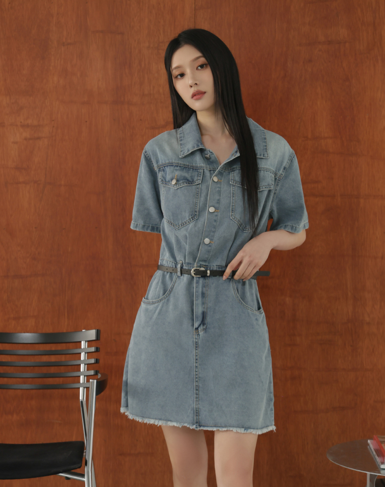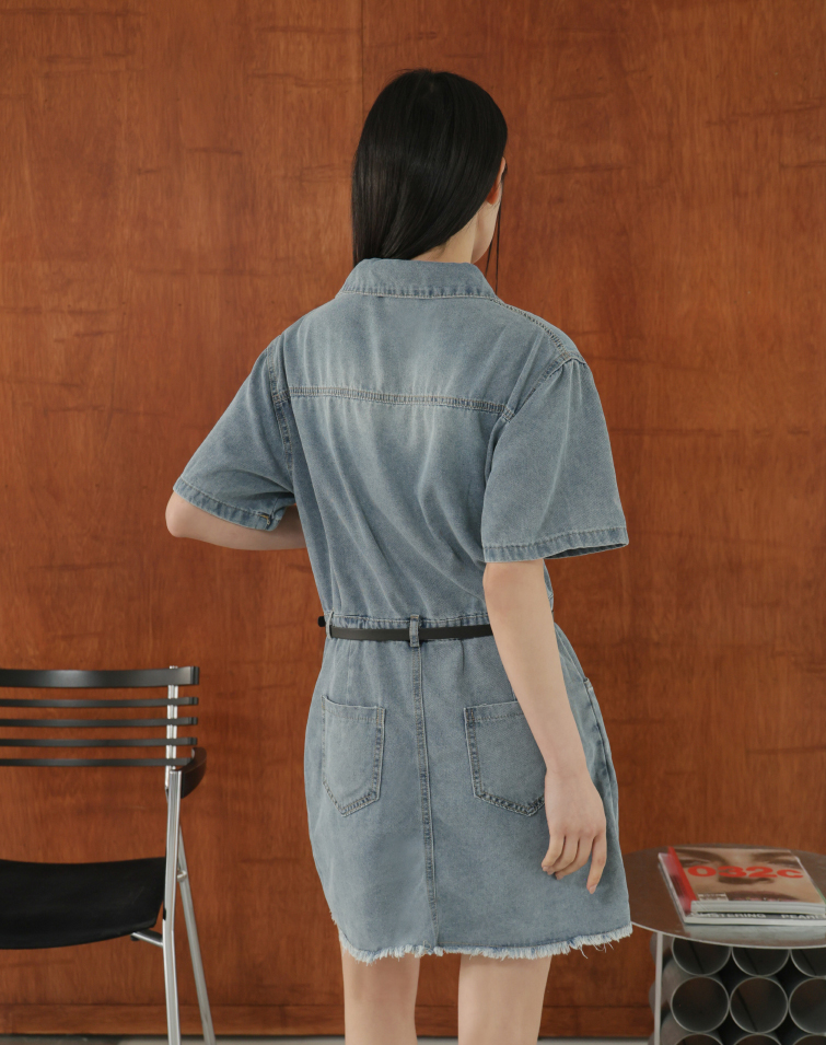 MINIMALIST WASHED FRAYED DENIM DRESS