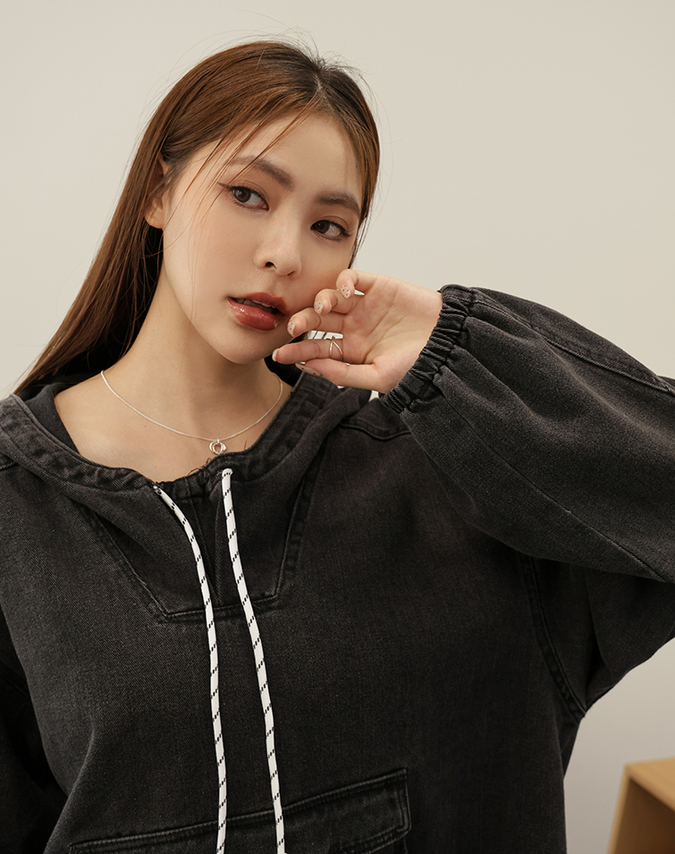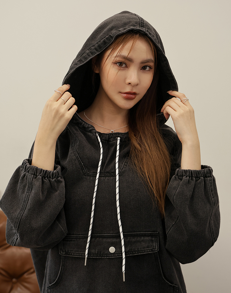 Drawstring hood / single pocket / loose and flattering fit / substantial fabric