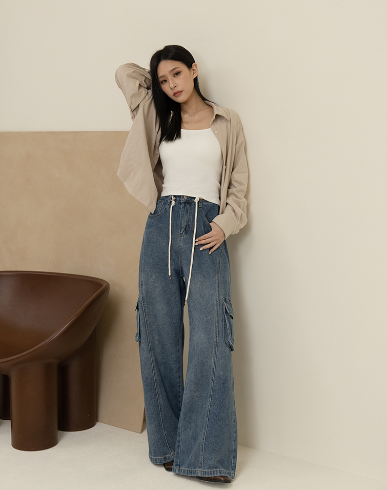 STREET-STYLE DRAWSTRING CARGO PANTS