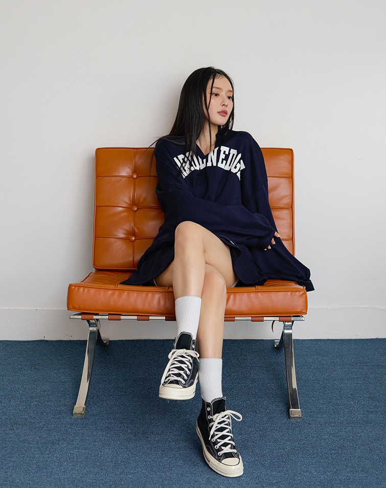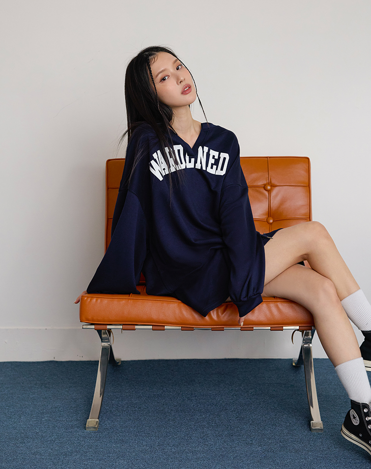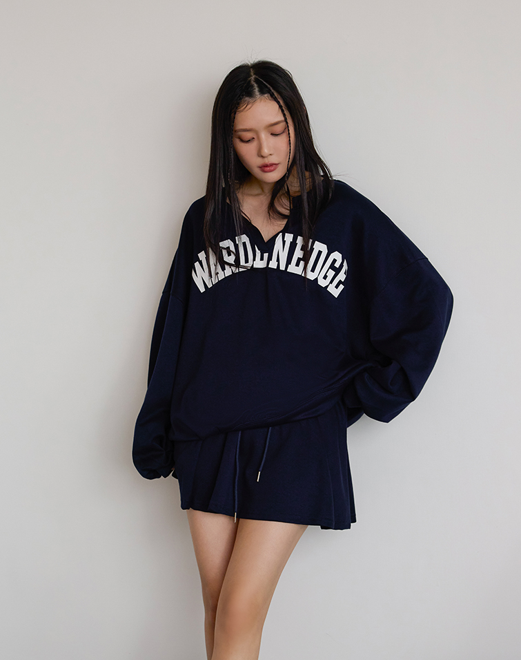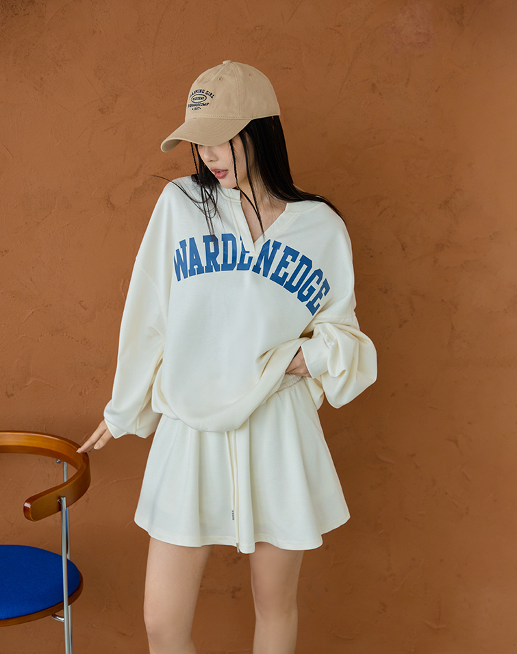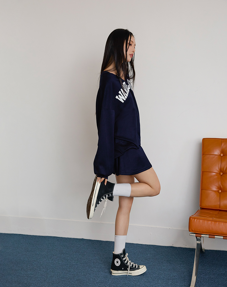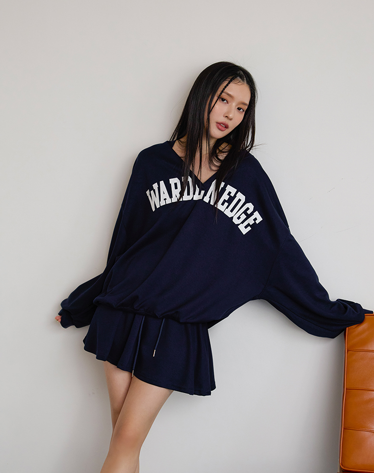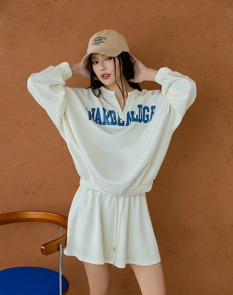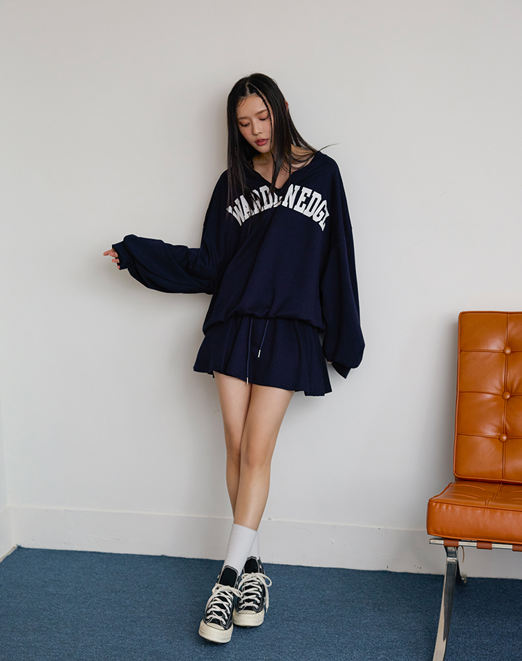 V-NECK LETTER PRINT TOP & SKIRT SET