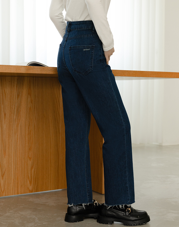 Front & Back Pockets / Simple, Versatile / Frayed Hem