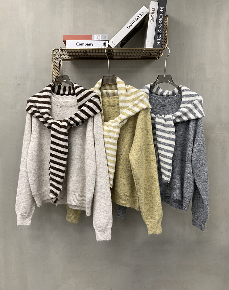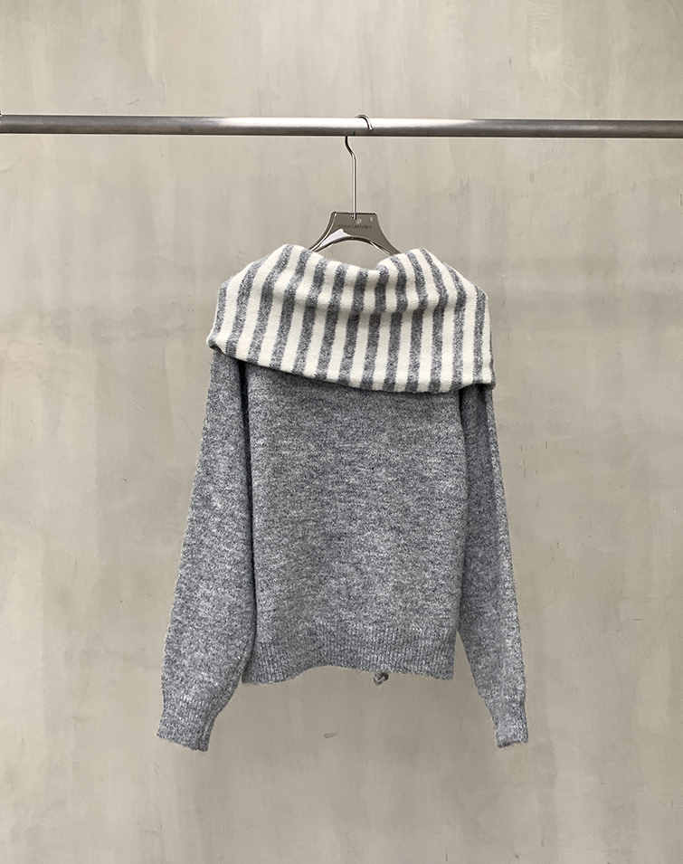 FRENCH STRIPE SHAWL LONG-SLEEVE TOP