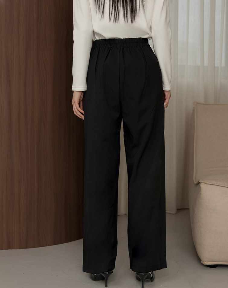 Back Elastic Waist / Side Pockets / Slimming Pleats