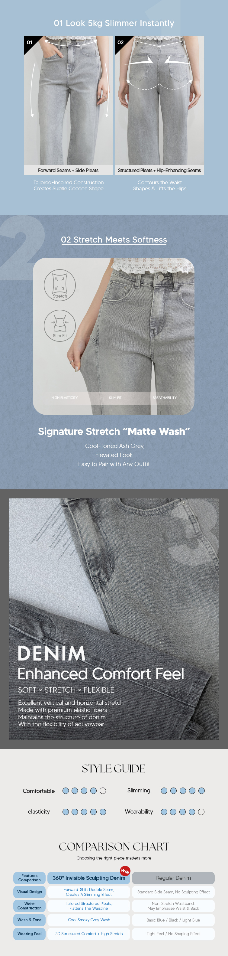 All-Angle Slimming / Front & Back Pockets / Soft Denim