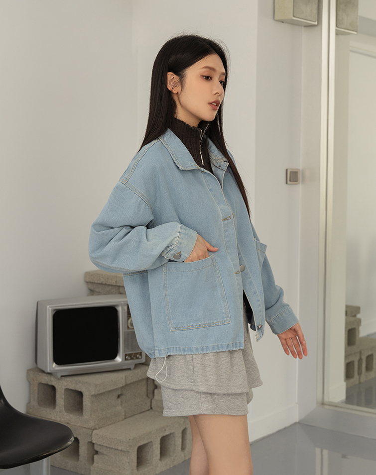 CASUAL DOUBLE-POCKET DENIM JACKET